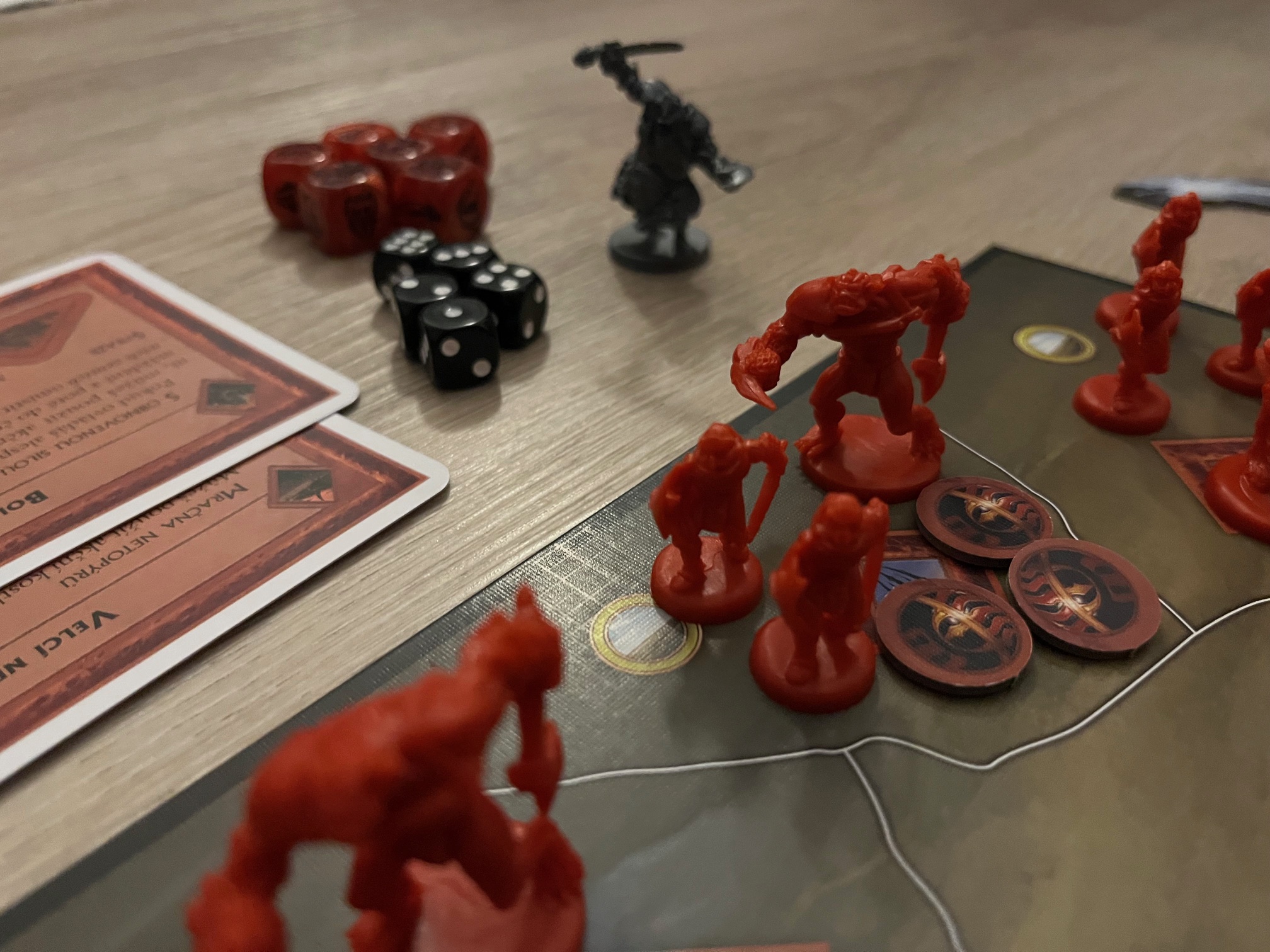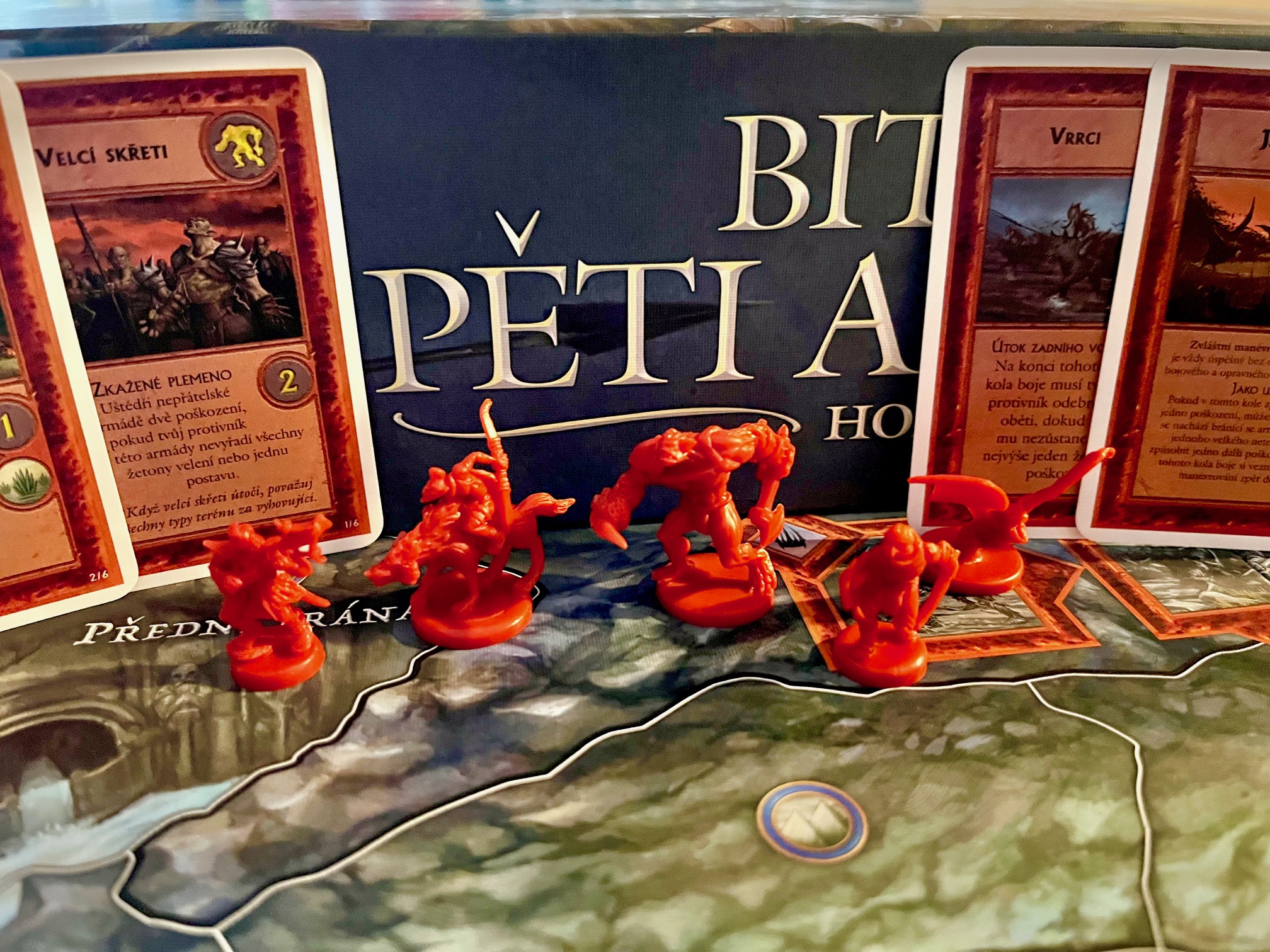 Na co je třeba se připravit, to jsou dlouhá pravidla a ne úplně lehká. Bitva pěti armád je komplexní velkou hrou, která toho obsahuje hodně na nastudování i pochopení, a i když obsahuje šikovné lama karty (velikosti A4), tak se u prvních partií asi nevyhnete občasnému nahlížení do pravidel. A je snadné občas něco zapomenout. Zkrátka zde platí, že hře je třeba věnovat čas a první partie bývají pomalejší. Odměnou za to je až filmový zážitek, ale ne každý bude ochotný ho do hry investovat, což naprosto chápu.