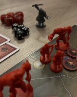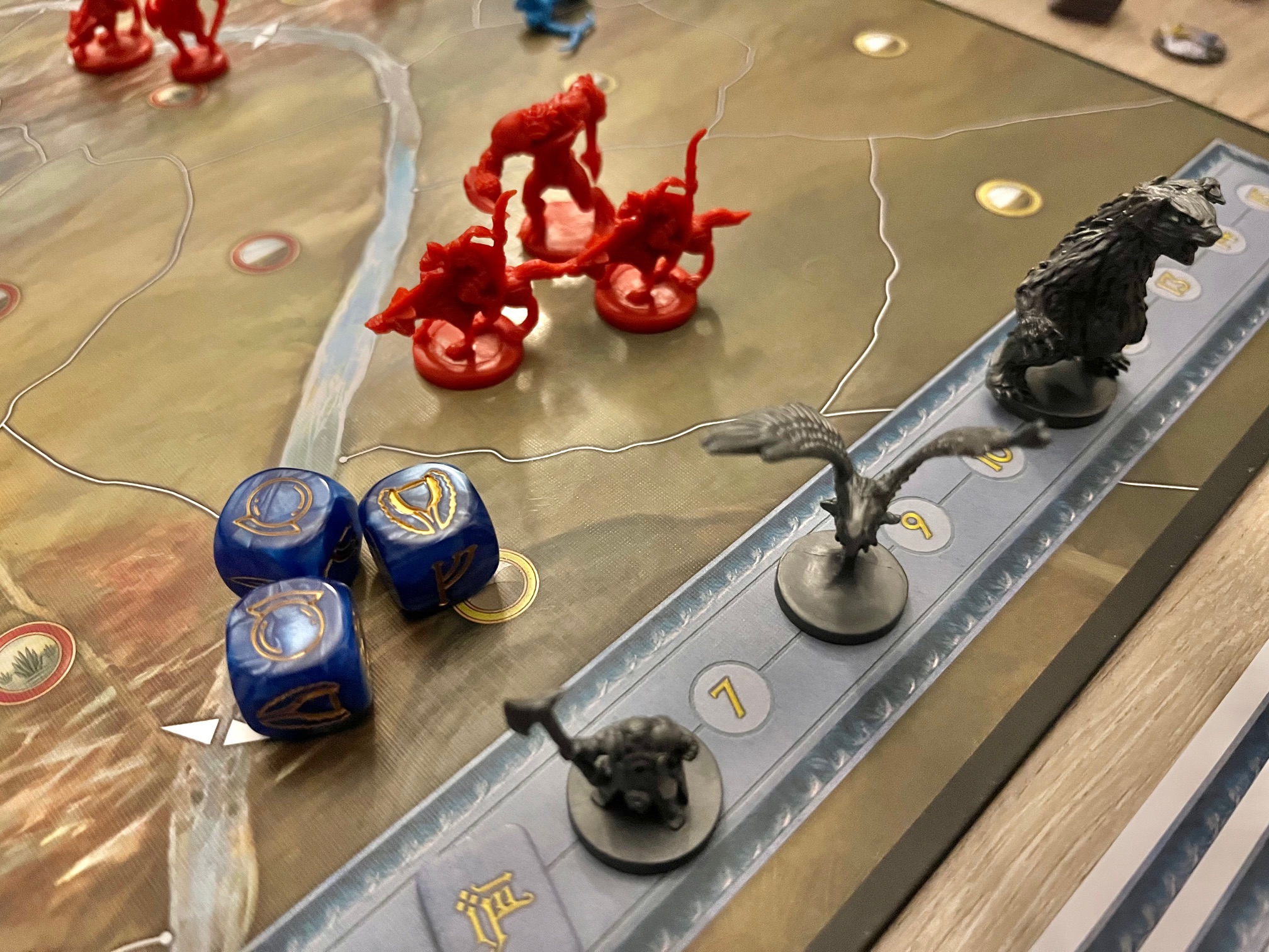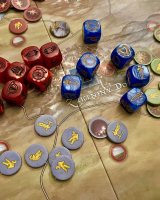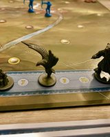 Co ale musím zmínit, to je nejen stupnice osudu, která se posouvá na základě stínem tažených žetonů, ale i boj, který má pro mě velmi hezké řešení v pětici kroků, které hře dávají pro mě osobně lepší a hlubší taktický aspekt, než u Války o prsten.