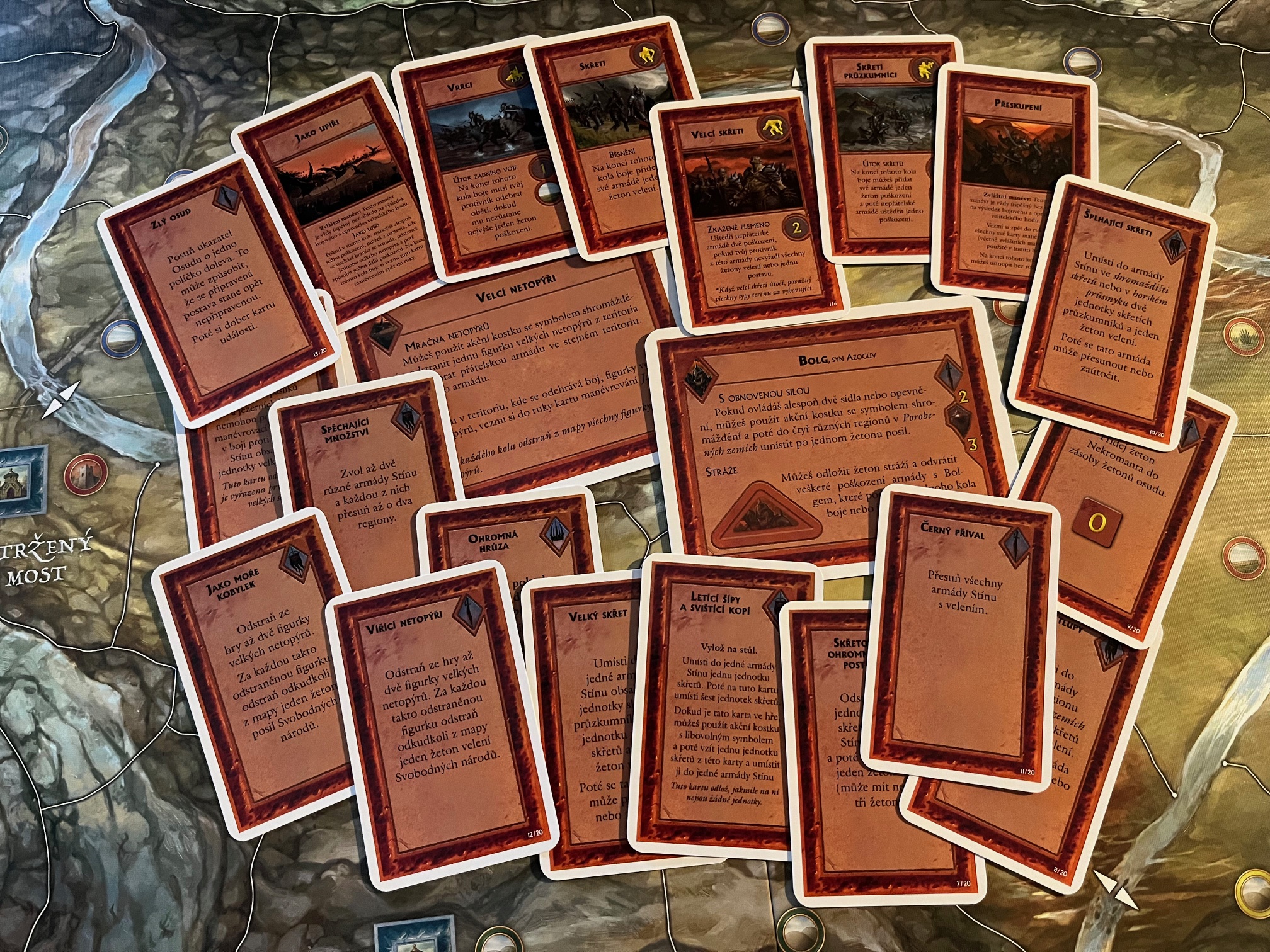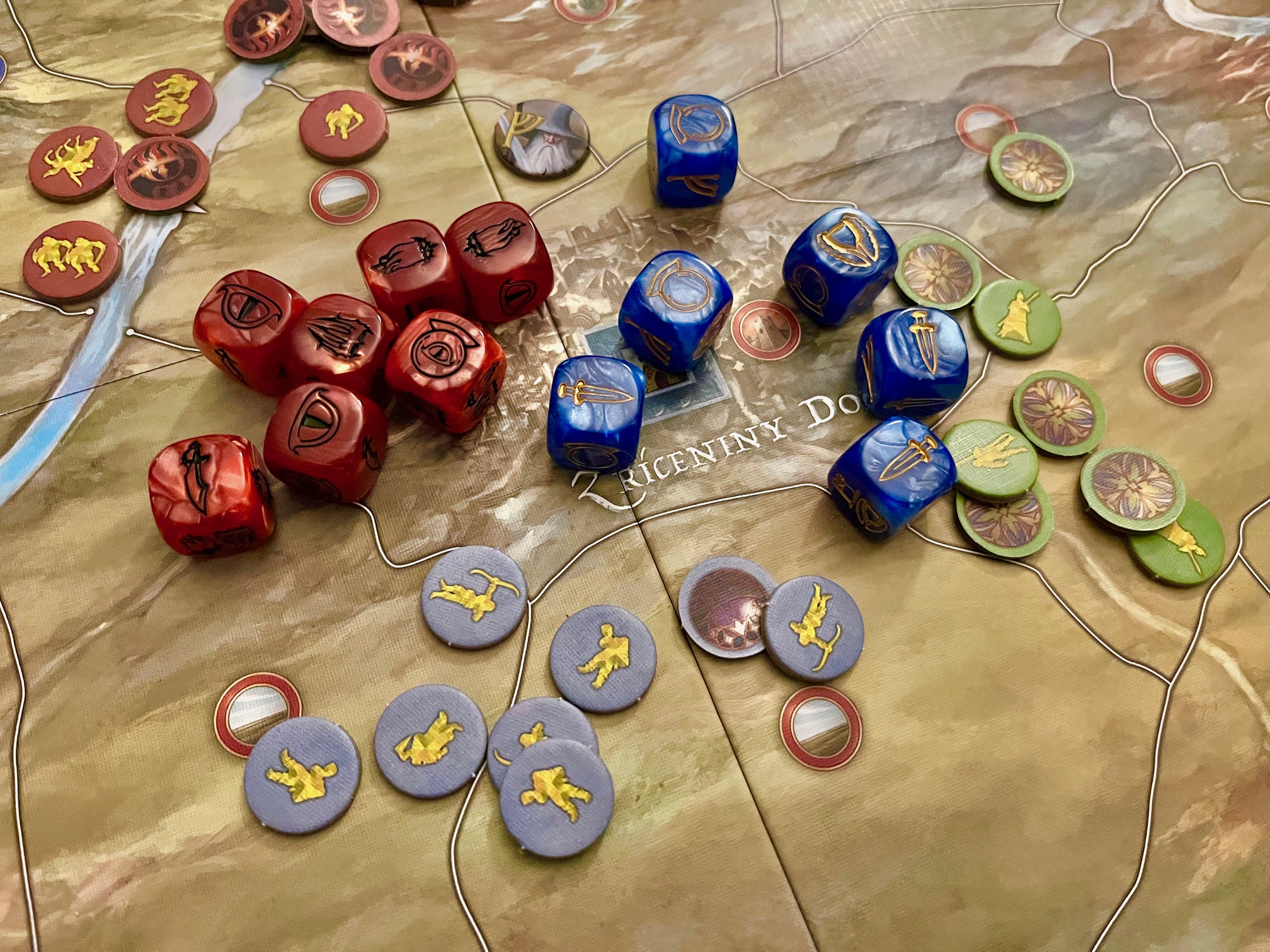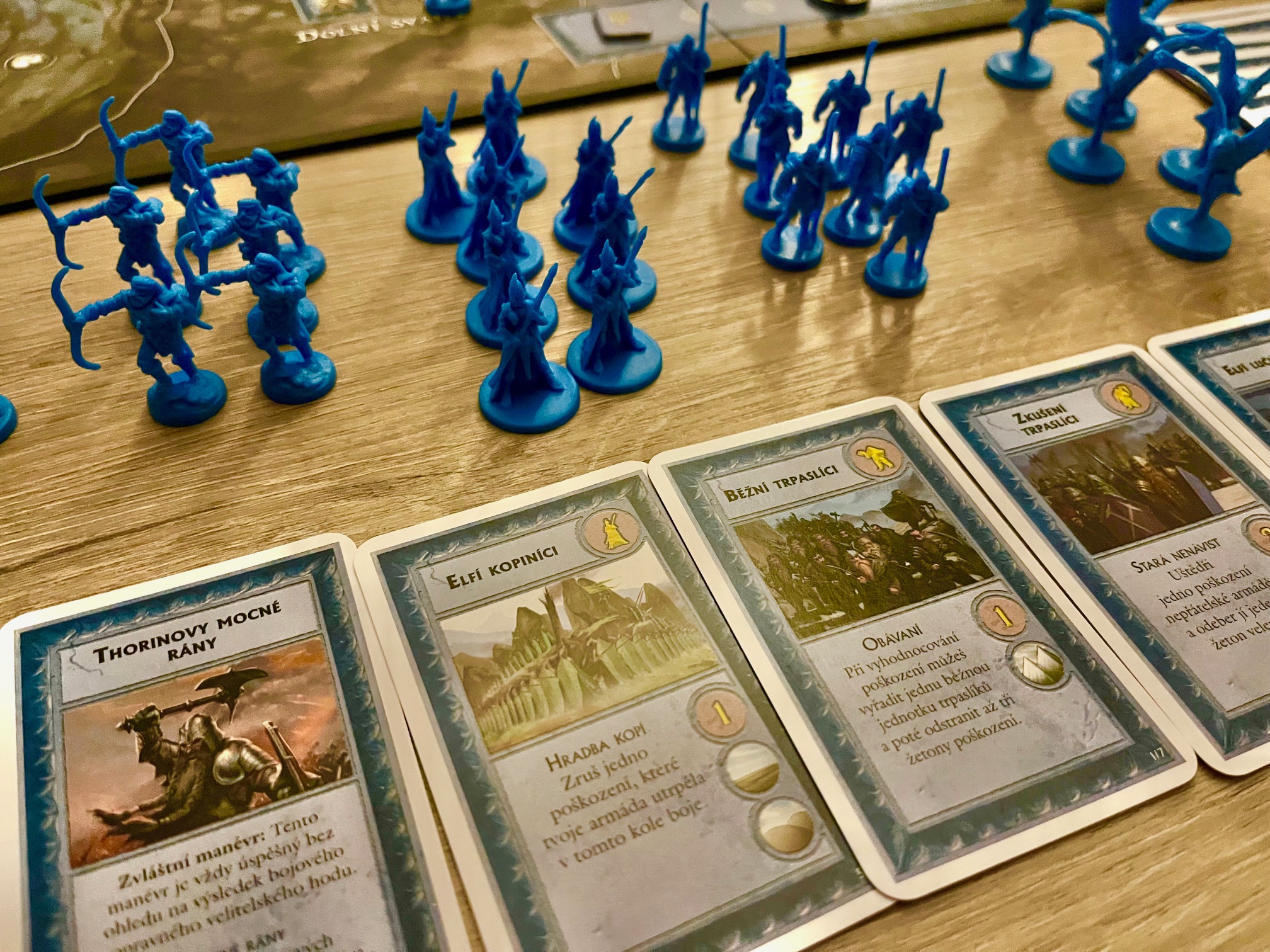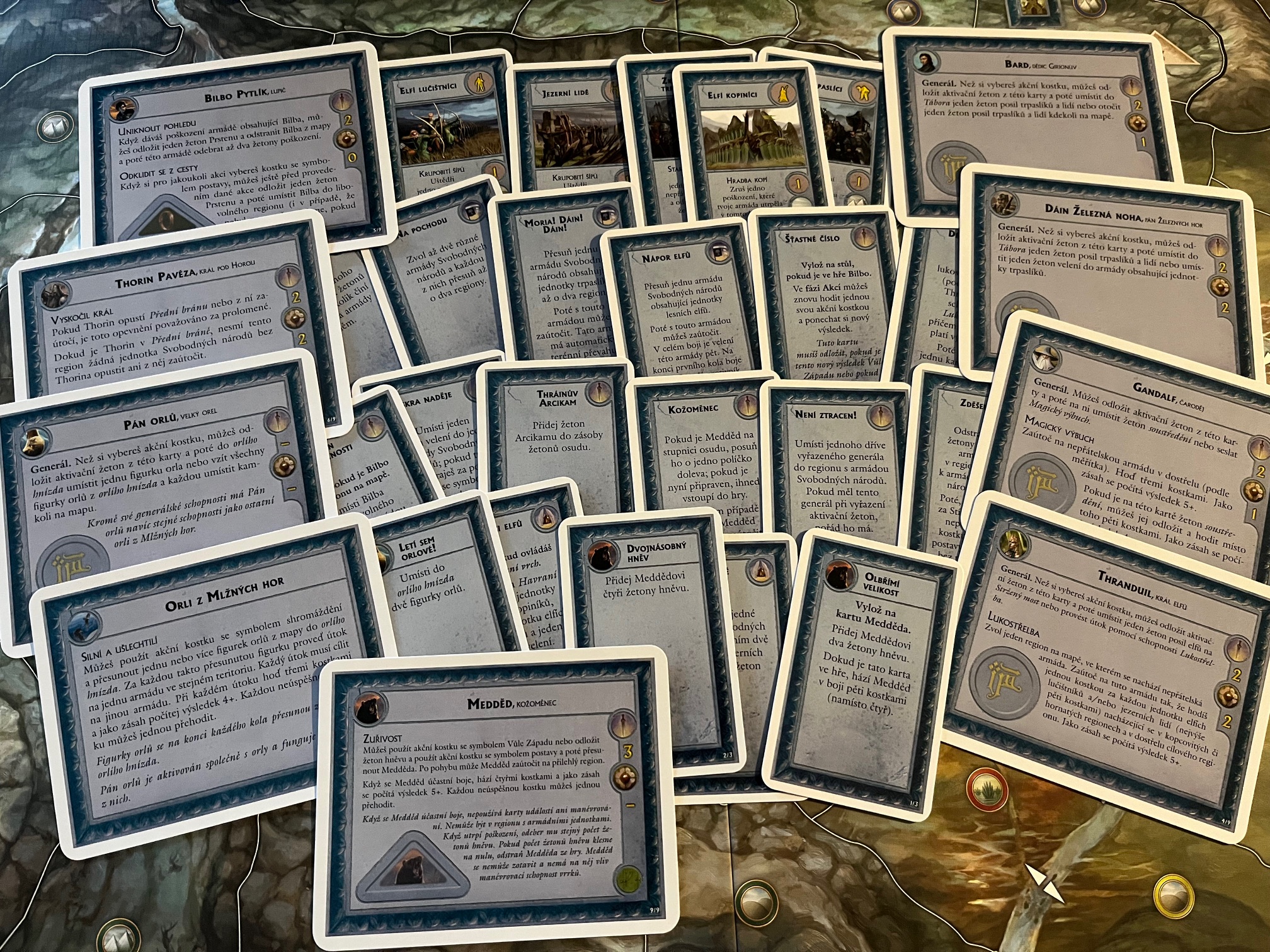 Celkově je Bitva pěti armád už z hlediska zpracování krásným zážitkem, který vás už při rozbalování uvrhne zpět do Středozemě a rukou sil Svobodných národů i Stínů. Ano, možná je na hře vidět jistý zub času a dnes už mají hry trochu jiné zpracování, ale mě se prostě styl této hry moc líbí od ilustrací, přes kostky či karty, které navíc nemají zbytečně tarotový rozměr, až po zástupy figurek, které obsazují detailní mapu údolí kolem Osamělé hory.