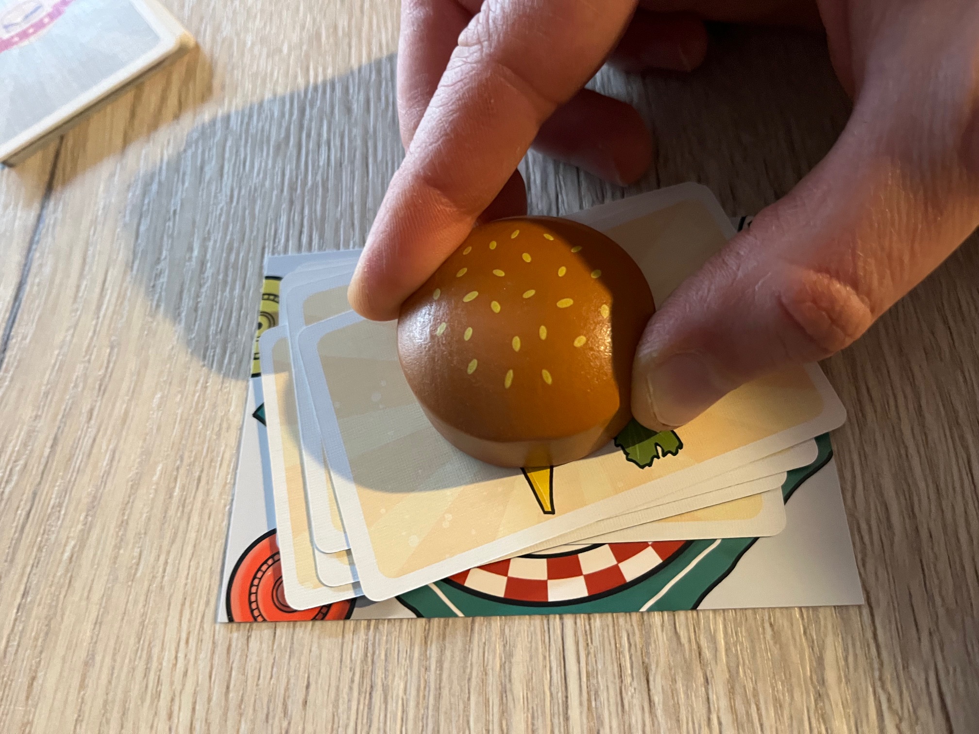 Je jedno, kolik hraje hráčů, karty se vždy rovnoměrně rozdělí mezi všechny hráče a doprostřed stolu se umístí žeton žemle a karta talíře. A to je celý setup!