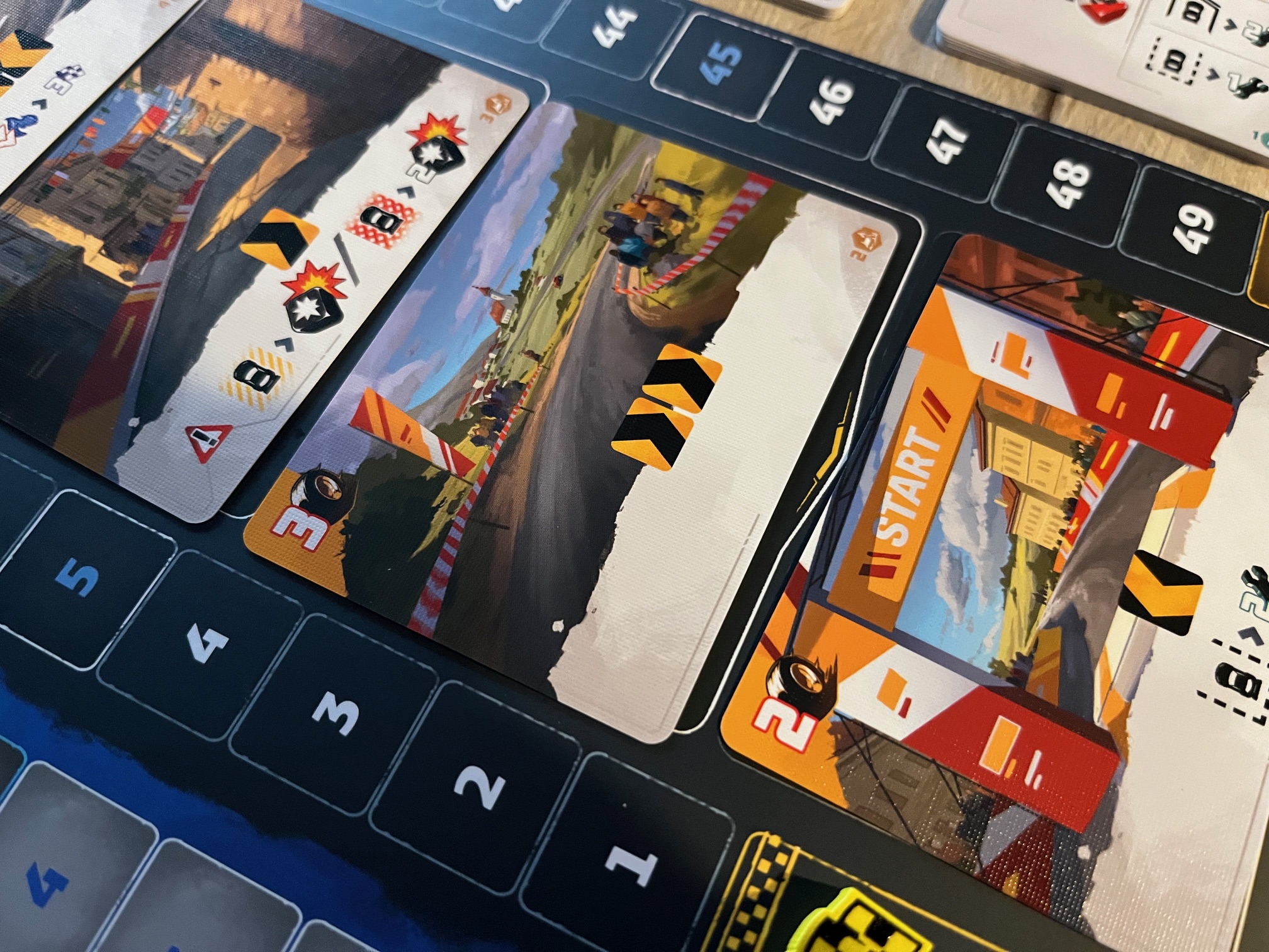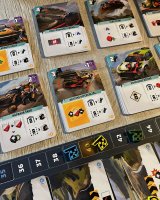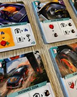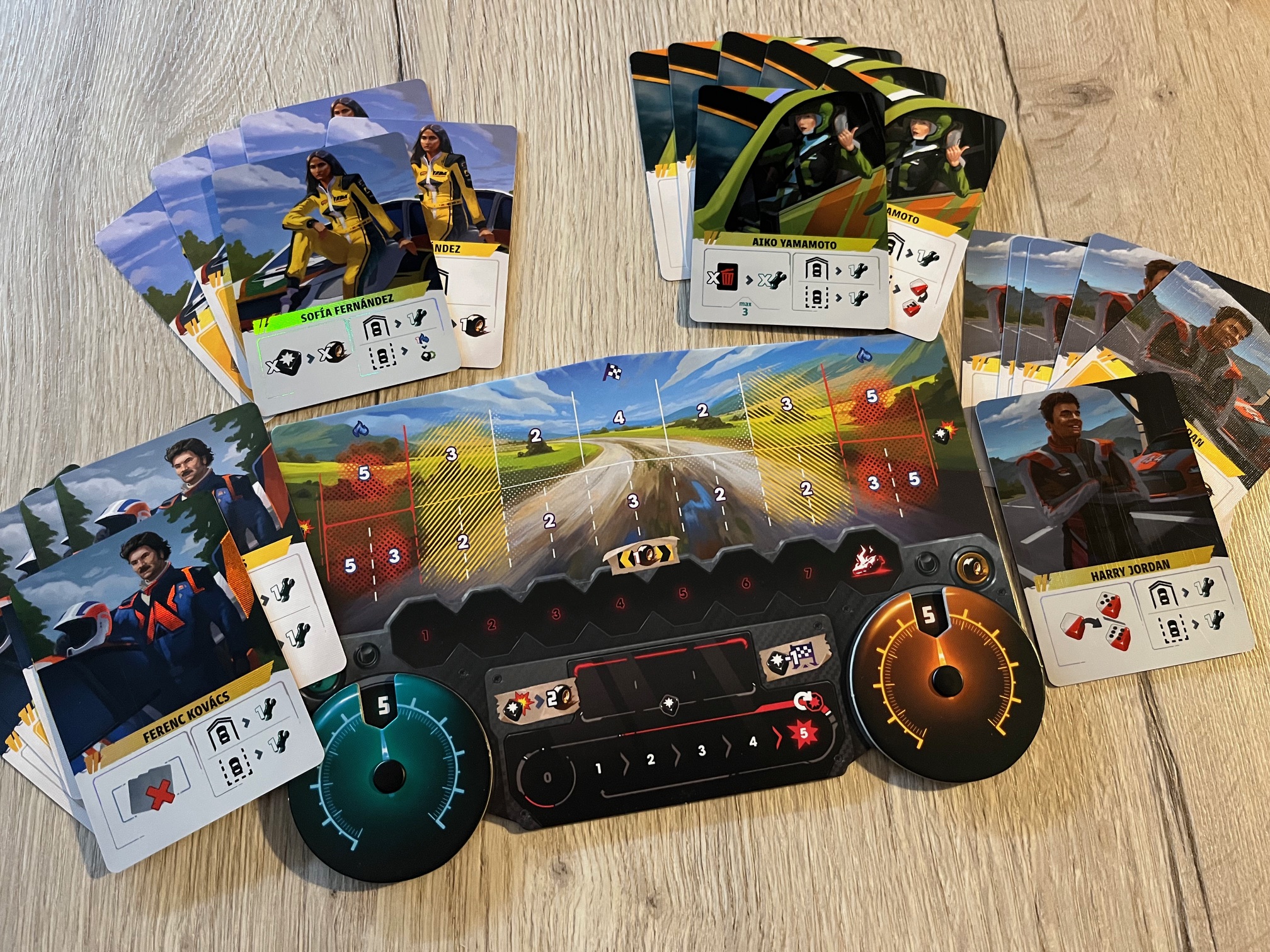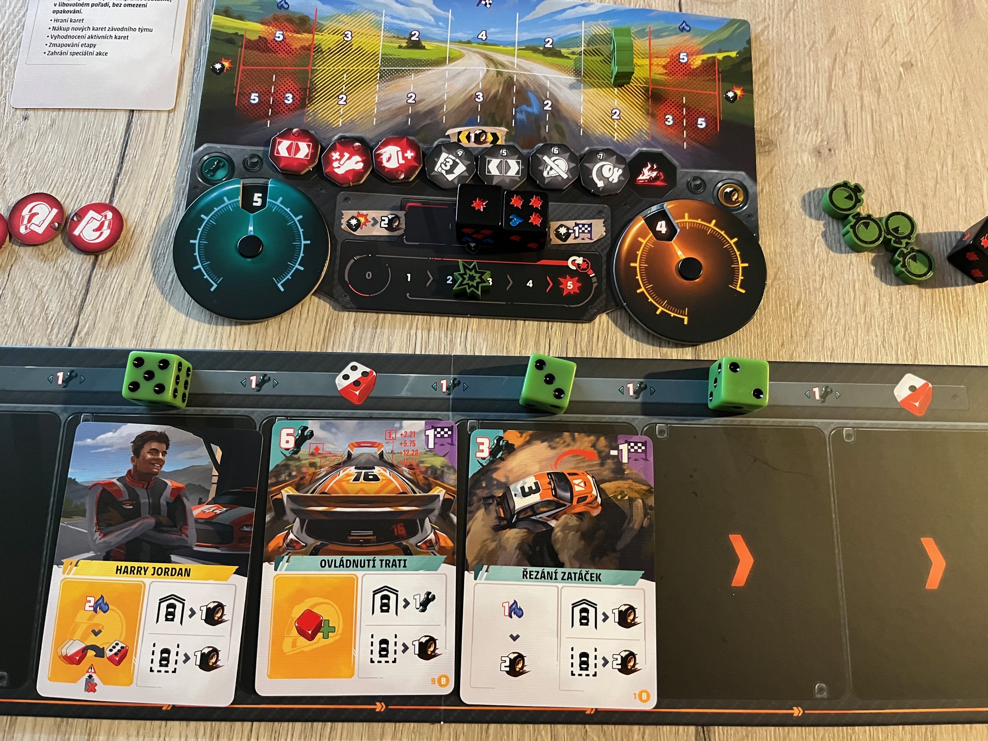 Na druhé straně se mi hra opravdu líbí z hlediska mechanik – líbí se mi nápad s tratí rozdělenou do etap, které hráči mapují pomocí navigátorů, aby za jejich zdolání získali bonusy, líbí se mi systém deck buildingu a hraní/vracení karet na postupně se posouvající stupnici, se kterou musíte během hry neustále pracovat a přemýšlet o pár kroků vpřed. Systém hry není složitý nebo vyloženě komplikovaný a hru lze docela rychle nastudovat i vysvětlit, ale správné zahrání a kombinace vyžadují větší um a zkušenosti. Zatímco na papíře vidíte jen pár akcí, cílem je vše dobře zkombinovat a ze všeho vytěžit maximum, takže akční fáze se roztáhne do několika možností. Právě propojení mechanik a celková promyšlenost všech prvků si mě získala na hře úplně nejvíc a přináší mi doslova radost objevovat spojení a kombinace možností.