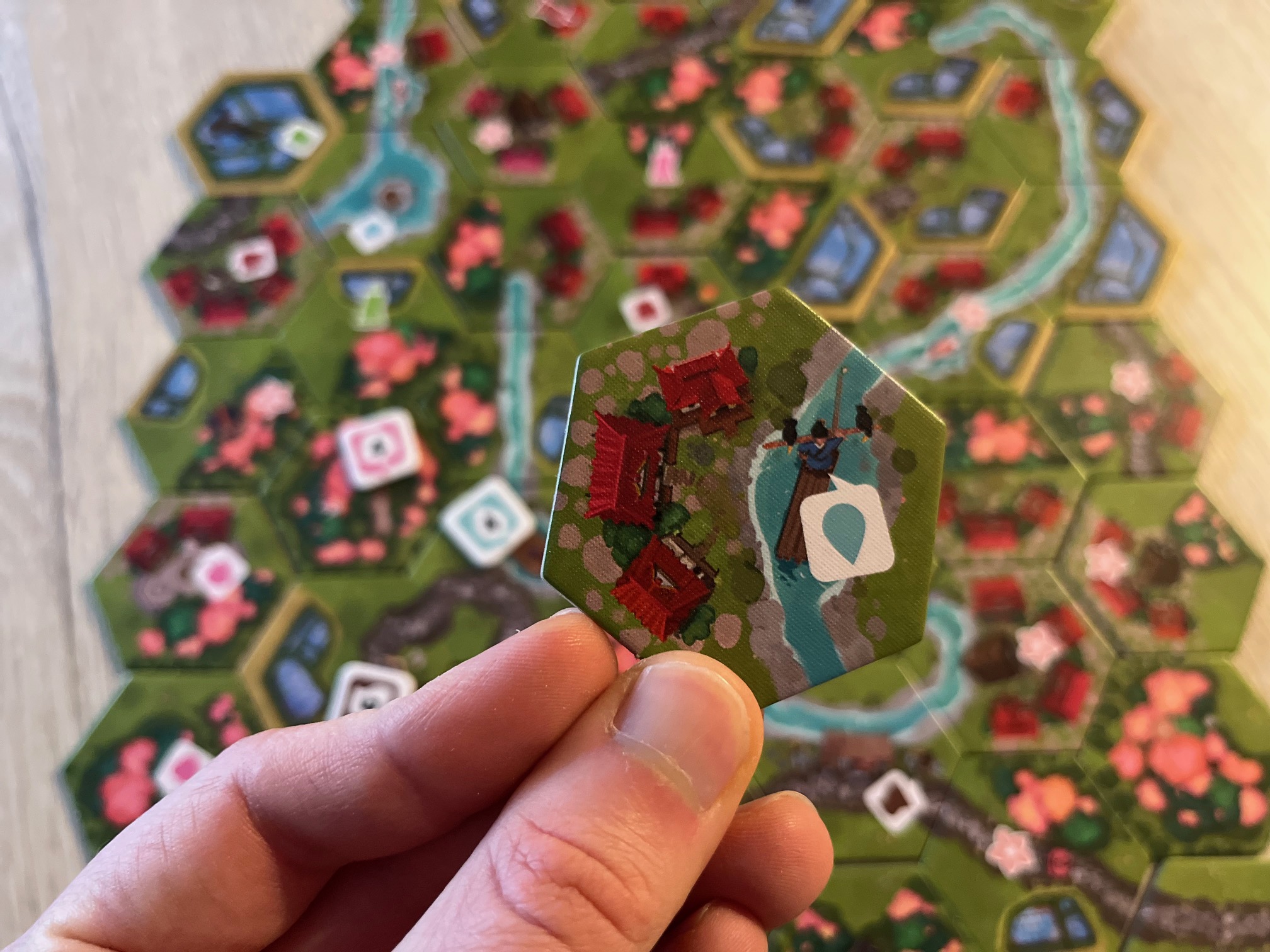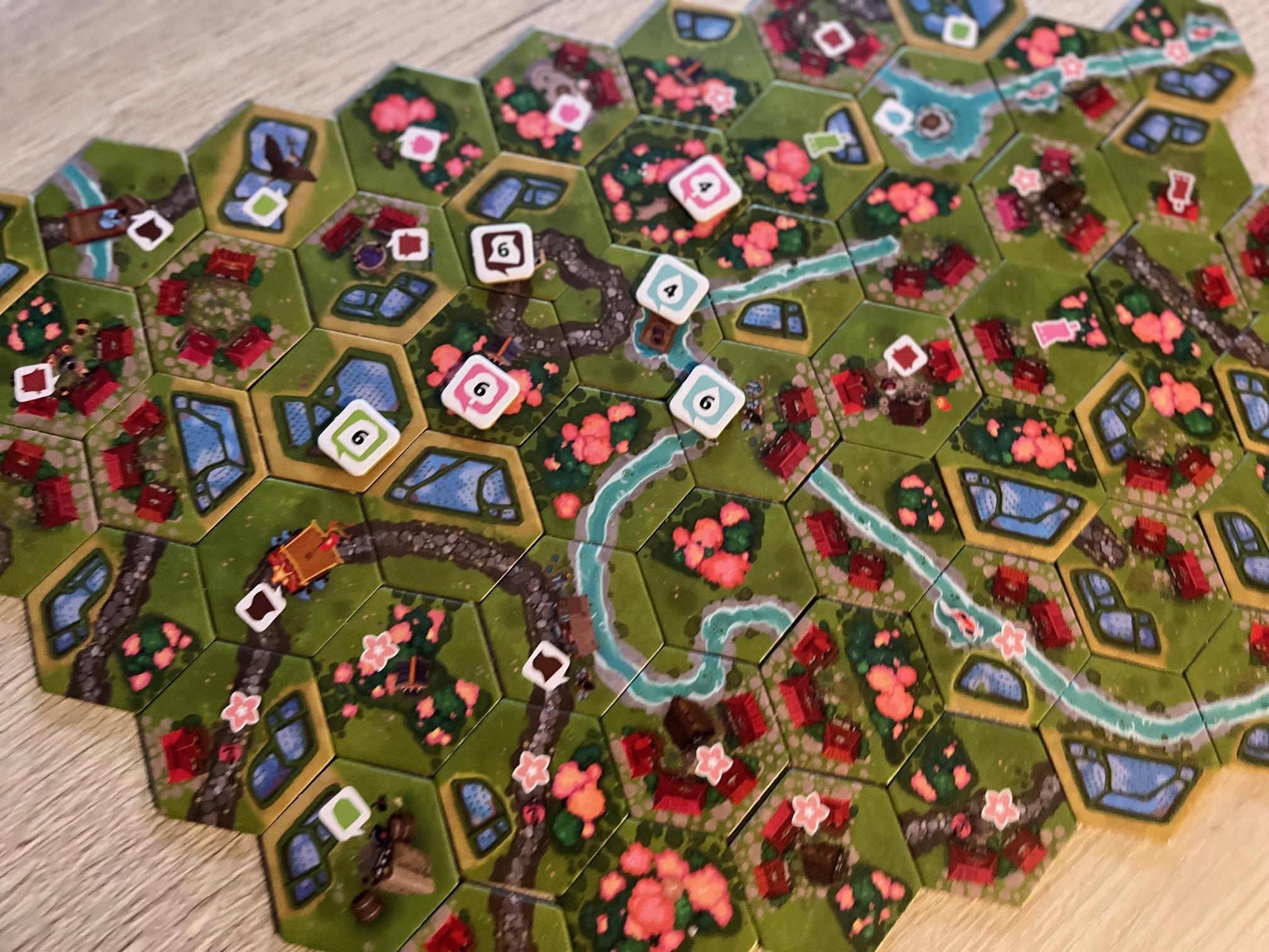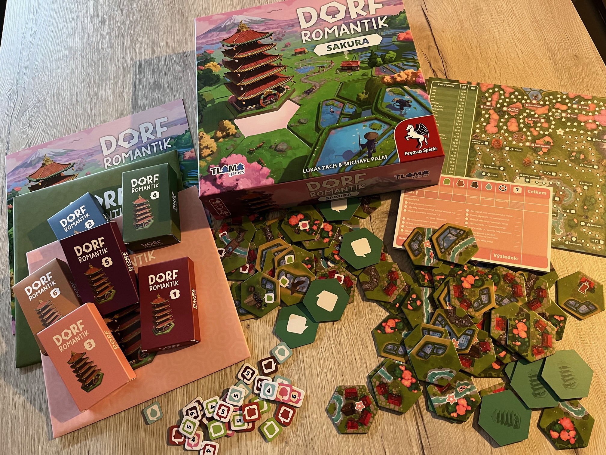 V roce 2024 se mi do ruky dostala asi nejpohodovější a nejzenovější hra, kterou jsem kdy hrál – Dorfromantik od TLAMA games. Nádherná pohodová skládačka s poklidnou atmosférou, která u mě nejvíc zabodovala při sólo hraní, a také díky postupně otevíranému a dávkovanému obsahu, který můžete během partií objevovat a přidávat. Dorfromantik je takový ten typ hry, ke které si uvaříte čaj nebo kávu, sednete si za špatného počasí za okny a budete si užívat radost z toho, jak vám pod rukama vzkvétá malebná krajina tvořená šestiúhelníkovými dílky plnými cest, řekl, kolejí, vesniček, políček nebo lesa. Zatímco původní hra přináší atmosféru řekněme tradiční střední Evropy, tak nové pokračování s podtitulem Sakura vás katapultuje na druhý konec světa, do magického a jedinečného Japonska. Pojďte se tedy s námi ponořit do skládání a pohody.