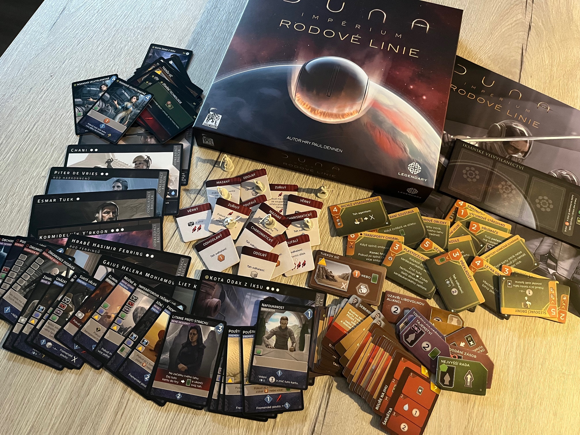 Nutno podotknout na úvod, že Rodové linie lze brát jako třetí rozšíření pro původní Dunu, ale i jako první pro Povstání. Lze ho totiž kombinovat napříč hrou, byť pro mě osobně se z Rodových linií stala čistě expanze pro Povstání. Proč? Protože původní Dunu mám kompletní a považuji ji za úspěšně uzavřenou a nové prvky mi už do ní přijde zbytečné přidávat. Navíc ne vše z Rodových linií se dá použít. Tak a už šup na něj.