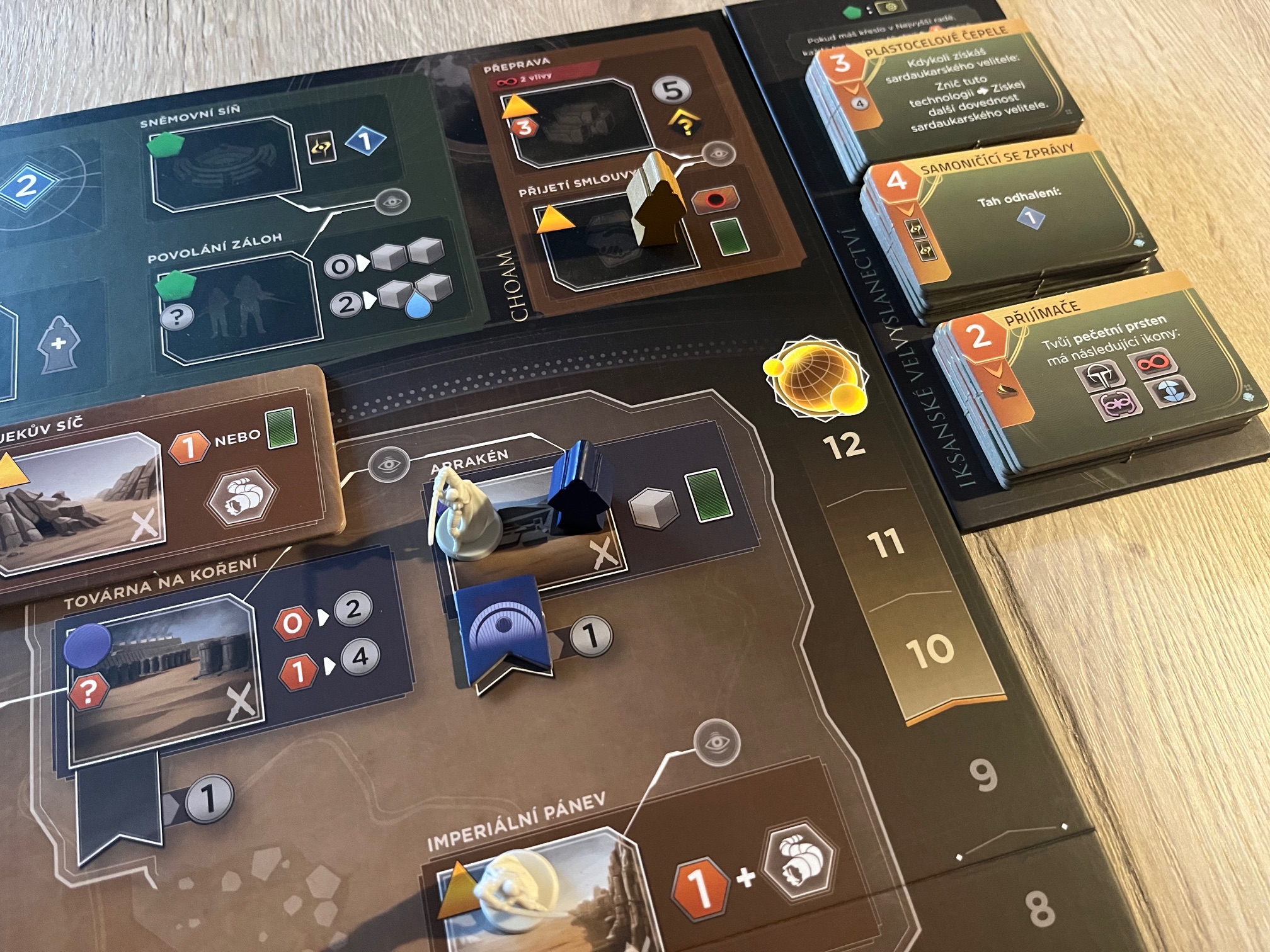 Druhou výraznou novinkou a komponentově rozsáhlou věcí jsou technologie. Ty se už v určitém provedené vyskytly v Iksu, zde ale dostávají odlišnou úpravu a dynamiku a možnost, jak se k nim dostat, byť pokud mechaniku znáte z původní hry a rozšíření, bude vám hodně povědomá.