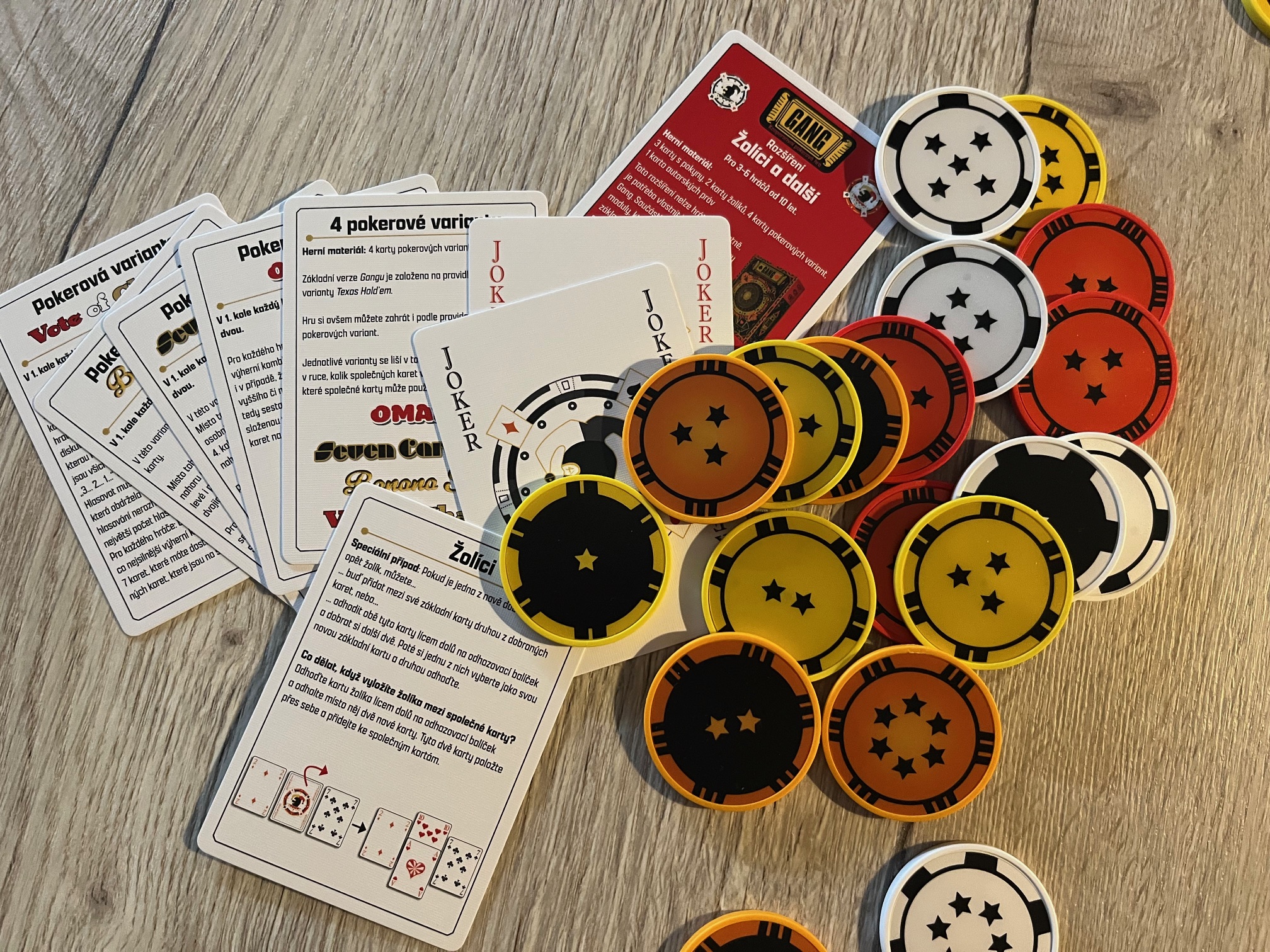 Nutno zmínit, že Albi vydalo ke Gangu i malé rozšíření nesoucí název Žolíci. To přináší nejen dvojici karet samotných žolíků, ale hlavně čtveřici herních variant pokeru, kdy nemusíte hrát texas hold´em stále dokola. Osobně doporučuji, pokud o hře uvažujete, rovnou vezměte i žolíky. Za cca 70 Kč dostanete dostatek obsahu a zvýšíte si variabilitu a znovuhratelnost.