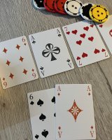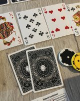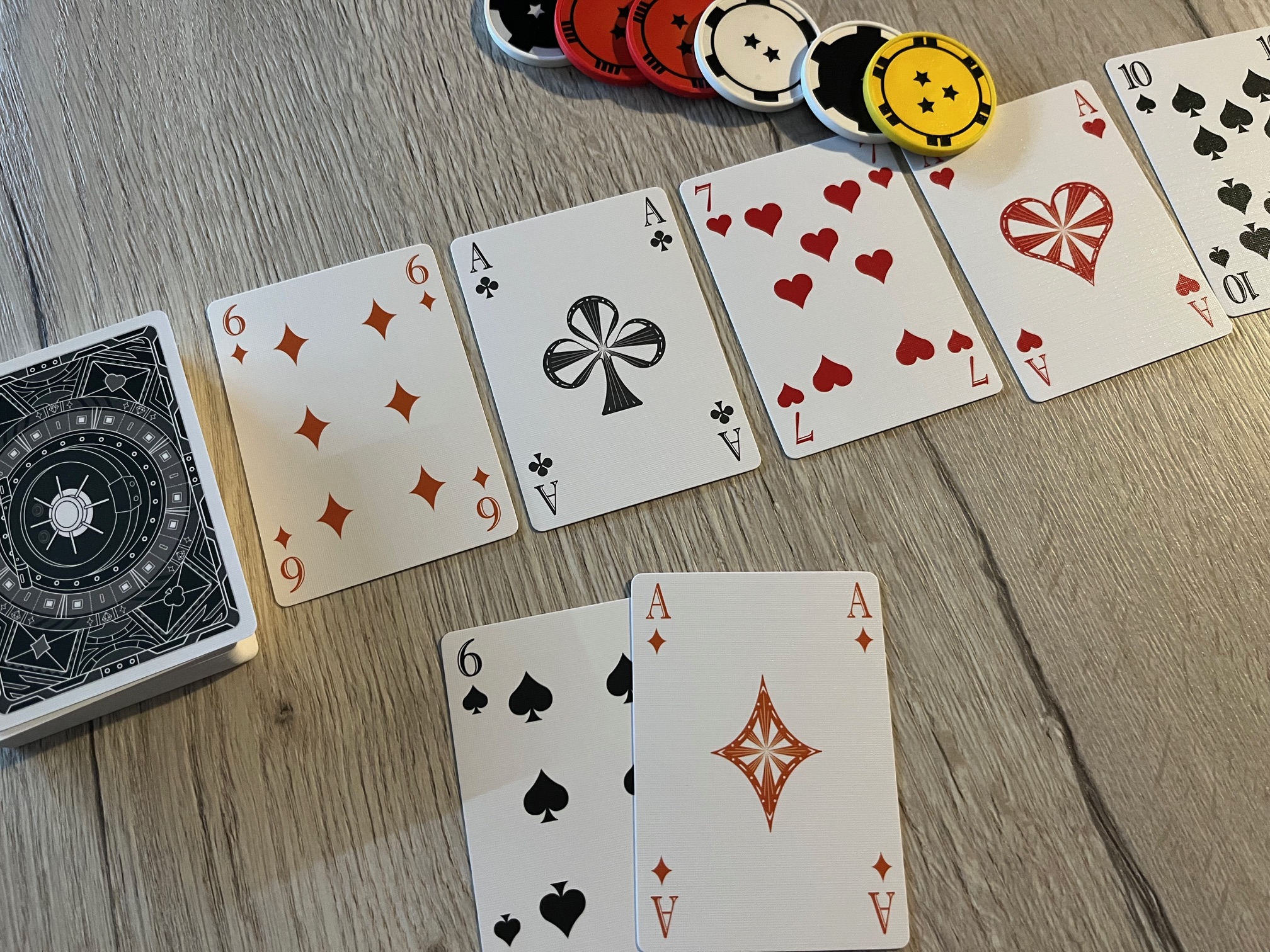 V základu je hra velmi jednoduchá. De počtu hráčů připravíte 4 sady žetonů a zamícháte karty. Každý hráč dostane dvě z vrchu balíčku, které si hráči prohlédnou a dle hodnot/kombinací, si rozdělí první sadu bílých žetonů, kdy platí, že čím vyšší počet hvězd, tím lepší by měl mít hráč karetní kombinaci, protože právě žetony jsou jedinou herní nápovědou mezi účastníky partie. První kolo ovšem přeci jen bývá spíš dosti náhodné, respektive moc neříkající, pokud náhodou hráč nemá třeba dvě esa.