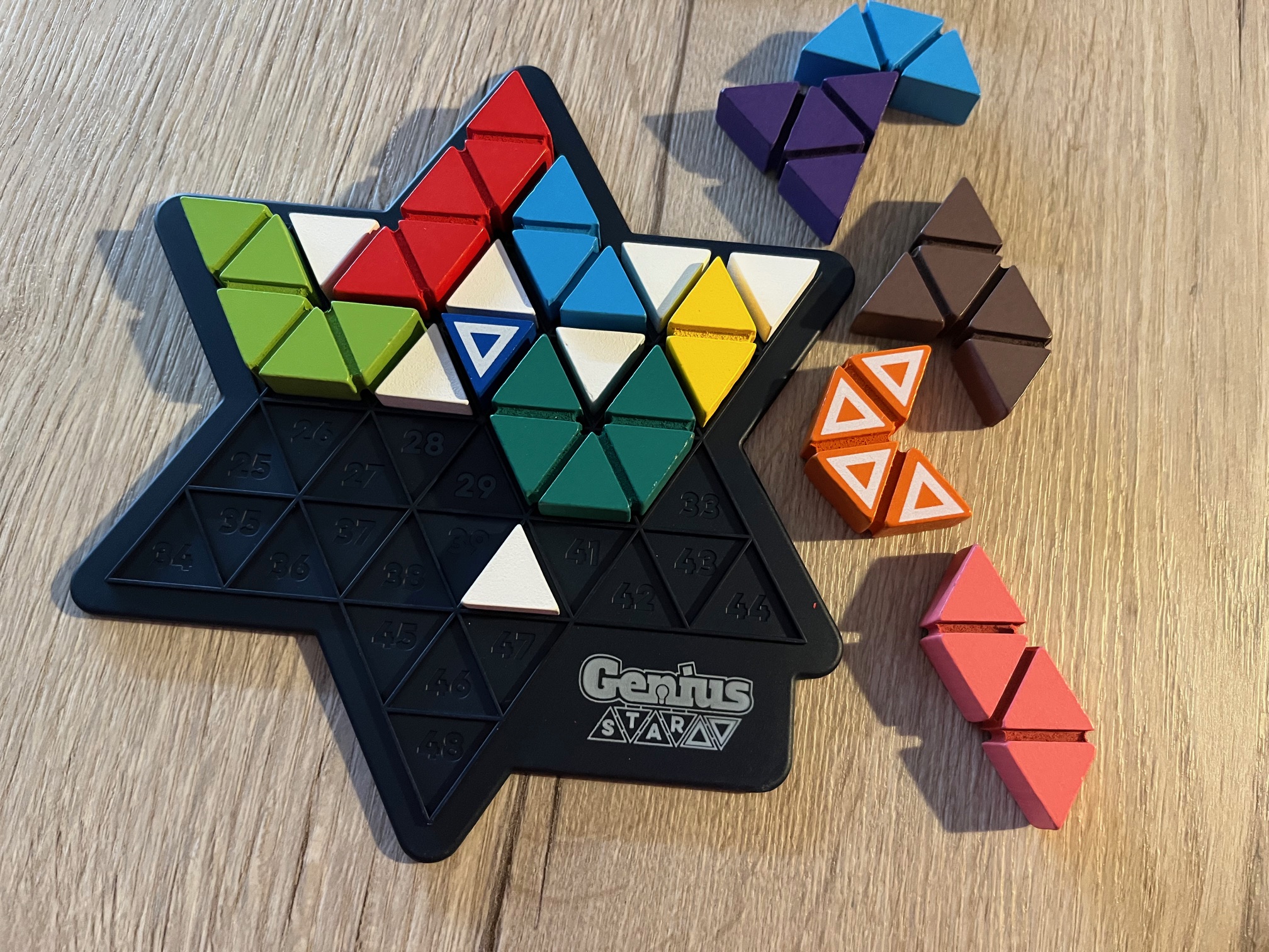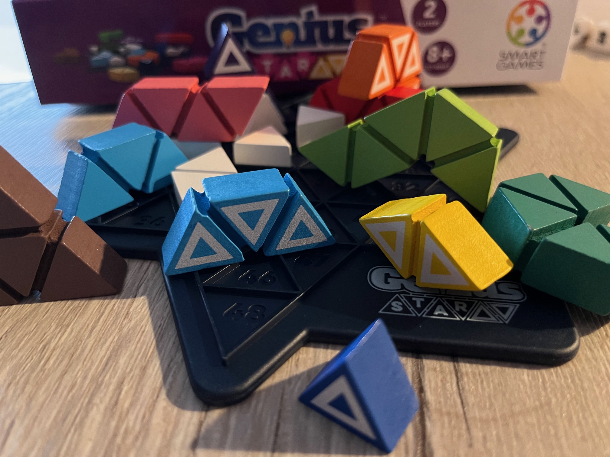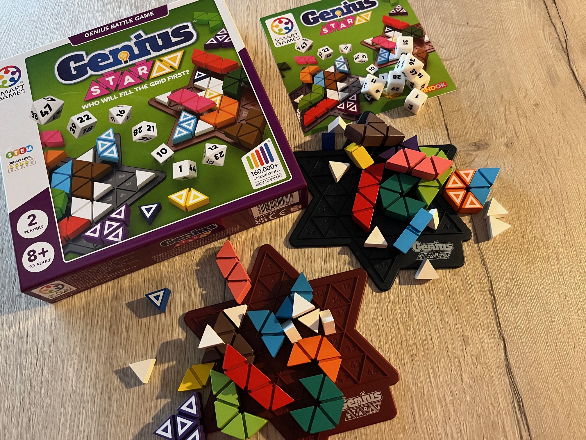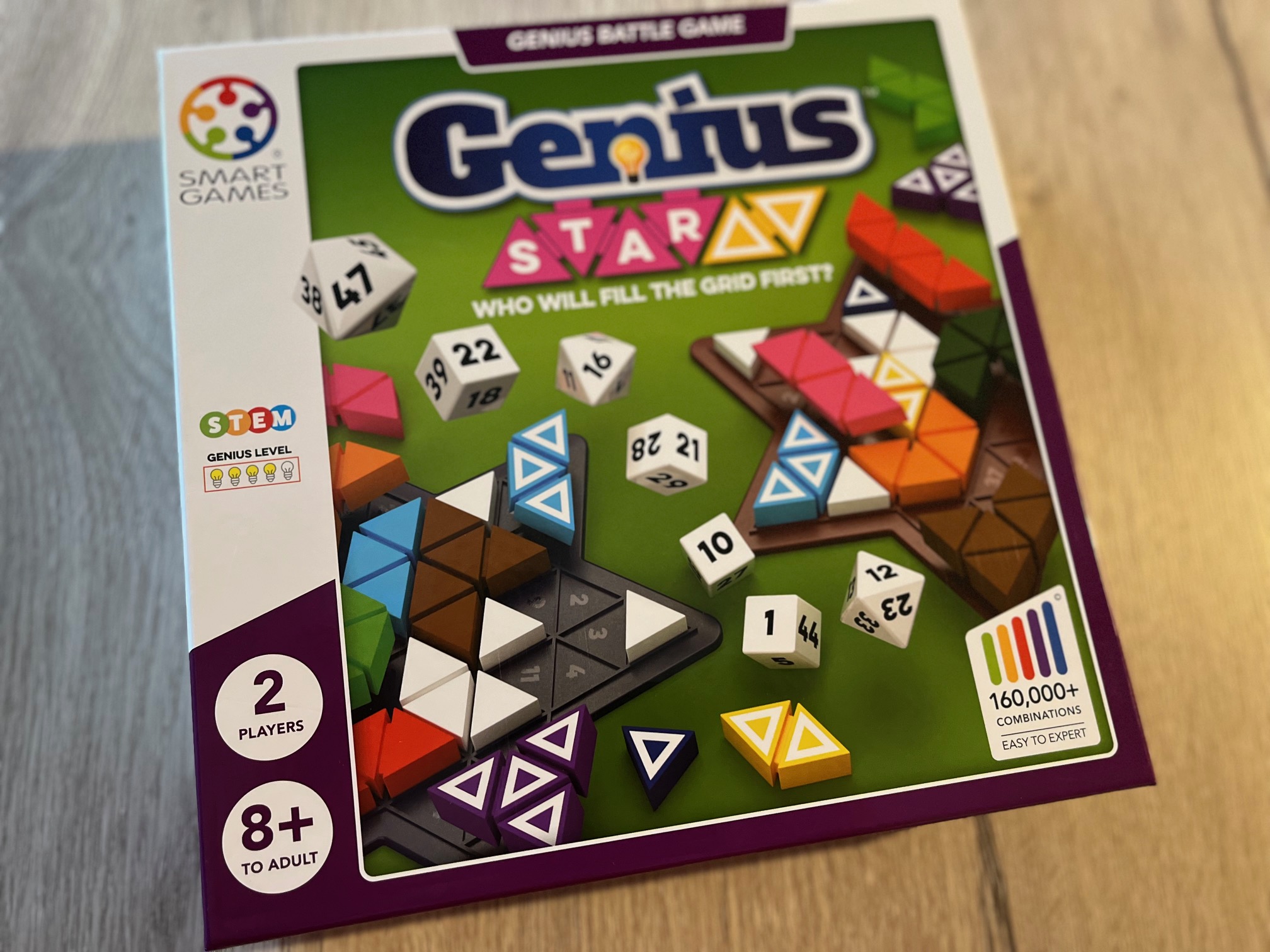 Genius Star před hráče staví rébus v podobě šesticípé hvězdy s očíslovanými trojúhelníkovými poli, které je třeba zaplnit, a to ať už hrajete sólo nebo v rychlostí dynamické výzvě jeden pro jednomu o co nejrychlejší zaplnění. Hra vám zabere cca 10 min na jedno skládání, ať už hrajete sami nebo dva a ideální věková hranice je 8+.