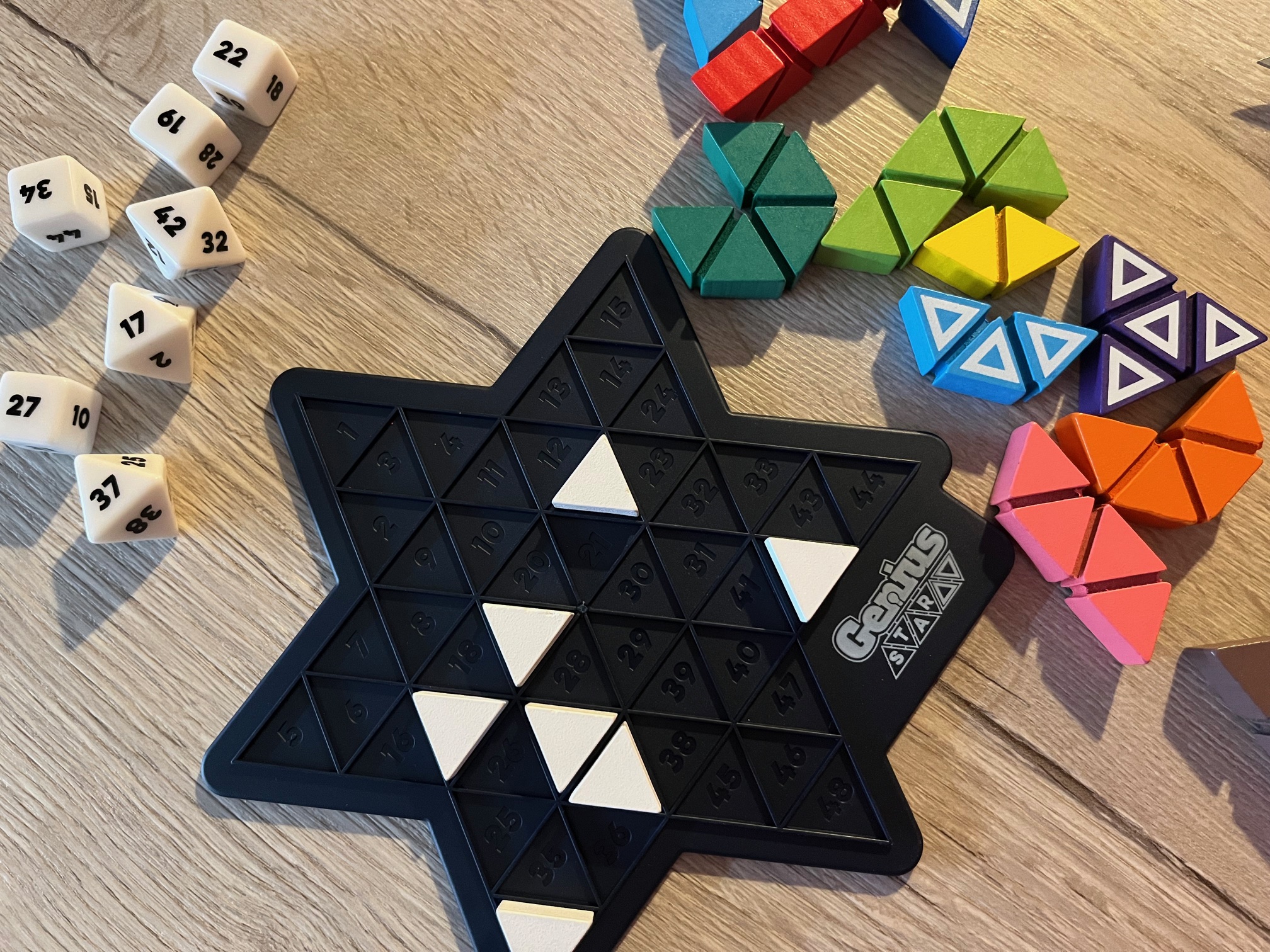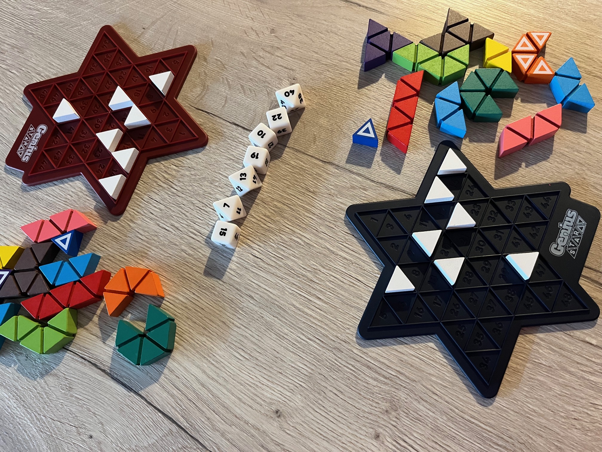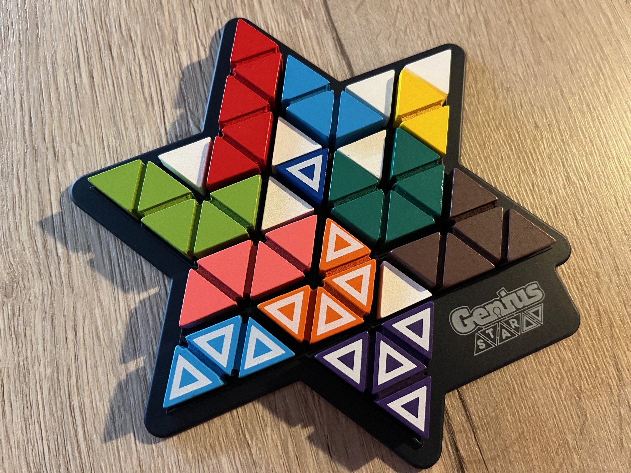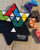 Genius Star před hráče staví rébus v podobě šesticípé hvězdy s očíslovanými trojúhelníkovými poli, které je třeba zaplnit, a to ať už hrajete sólo nebo v rychlostí dynamické výzvě jeden pro jednomu o co nejrychlejší zaplnění. Hra vám zabere cca 10 min na jedno skládání, ať už hrajete sami nebo dva a ideální věková hranice je 8+.