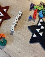 Herně, respektive pravidlově, je hra velice jednoduchá. Herní průběh, tedy skládání a jeho systém se mírně liší podle zvolené úrovně od nejjednodušší „Stareter“ po nejsložitější „Wizard“, ale v zásadě vždy platí, že si každý hráč vezme jeden hvězdicový herní plán a sady barevných i bílých dílků. Na základě hodu kostkami jsou určena pole, která se zakryjí bílými blokovacími trojúhelníky a následně se mohou hráči pustit do skládání! Cílem je zaplnit celou hvězdu barevnými dílky různých tvarů, tak aby žádný nezbyl a vše bylo zaplněno. Dle zvolené úrovně se některé díly nesmí dotýkat, ale vždy platí, že každé kostkové „zadání“ má jen jedno řešení.