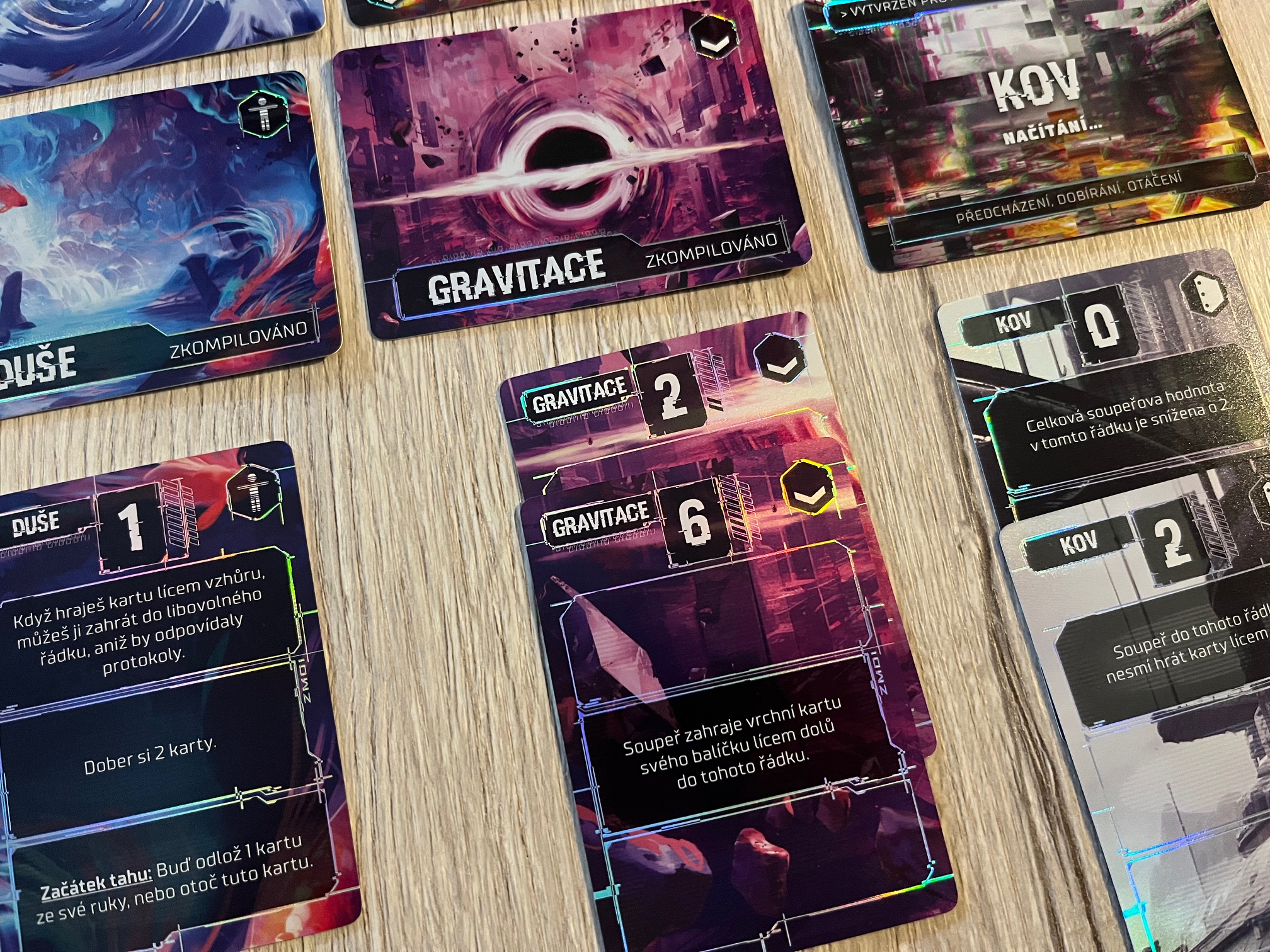 Zajímavé je, že během testování jsme zvládli partii za 20 minut, ale také jsme se přetahovali skoro hodinu. Zejména ze začátku bývají partie o něco delší, protože se musíte zorientovat ve fungování protokolů, klíčových slovech i v příkazech. Ono kouzlo tkví už v tom poskládat dobře 3 protokoly, které vám společně budou správně fungovat. A soupeř vám samozřejmě nikdy nenechá ideální kombinaci.