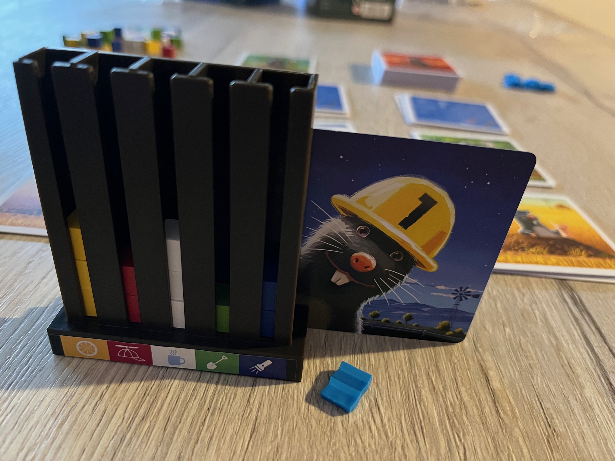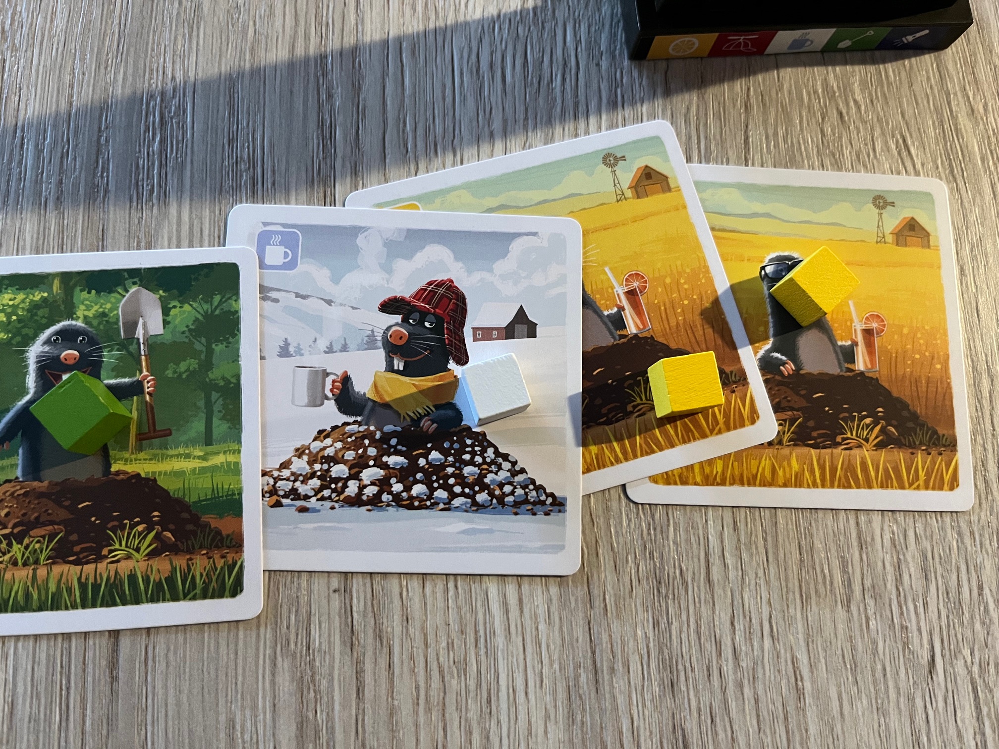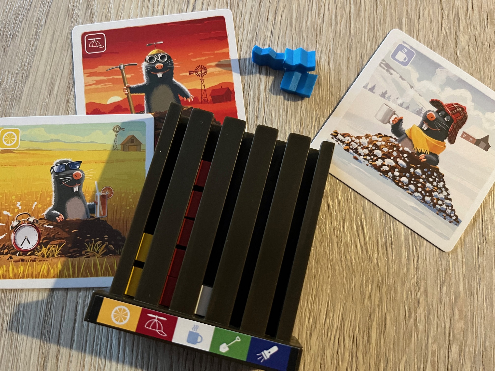 Co mě překvapilo je fakt, že jakmile od určité barvy nemáte ani jednoho krtka, nepočítá se do finálního skórování. Tedy neplatí, že bez jedné barvy máte nulu, čímž hra nenutí hráče sbírat vyrovnaně od každé barvy vše a v nižším počtu se může klidně stát, že každý hráč si dominantně vybere dvě-tři barvy a hráči si vzájemně moc nekonkurují. Ostatně ideální počet je pro mě u téhle hry 3 účastníci partie, kde nastává ideální poměr mezi kontrolou, předvídavostí a interakcí.