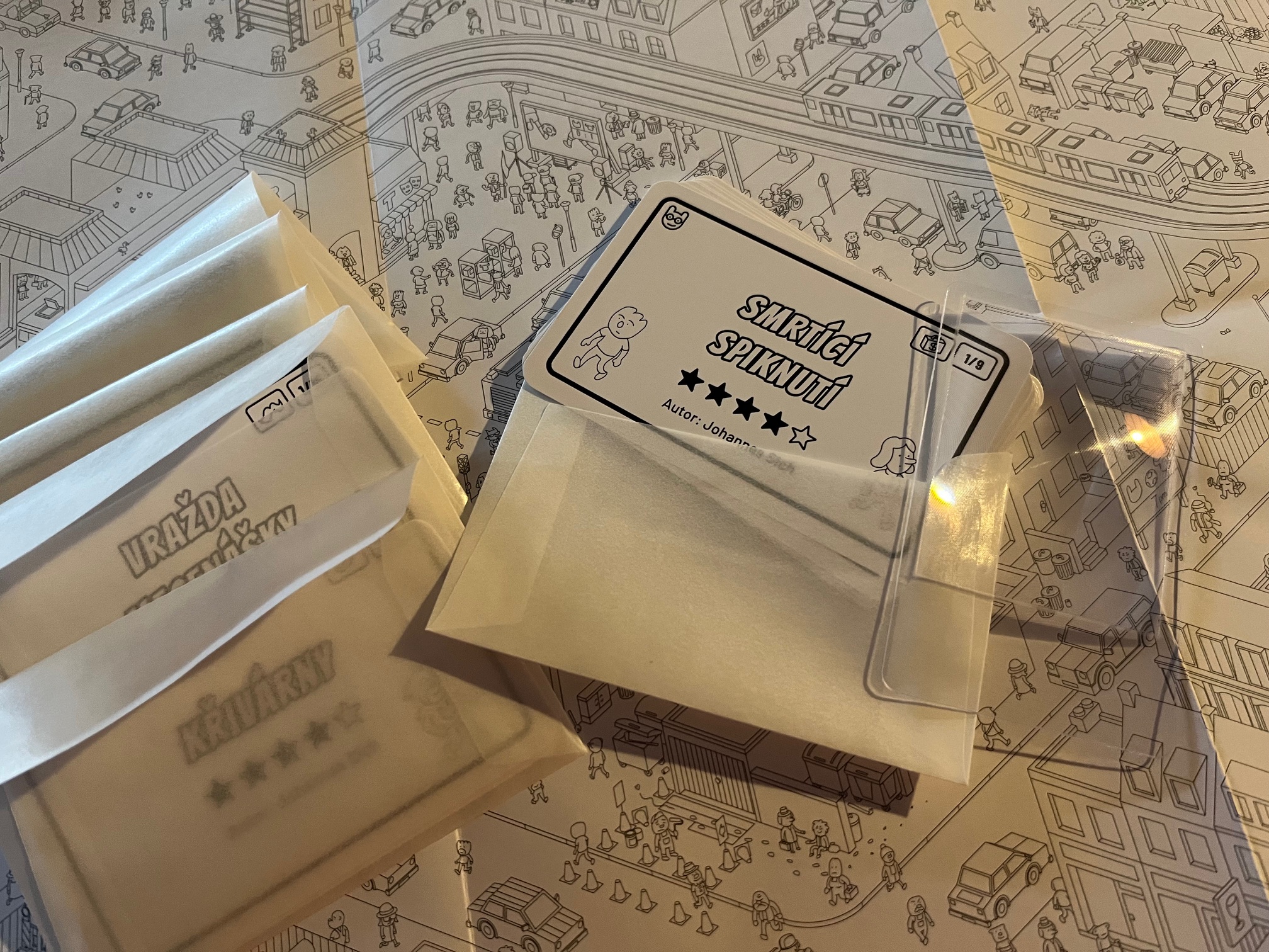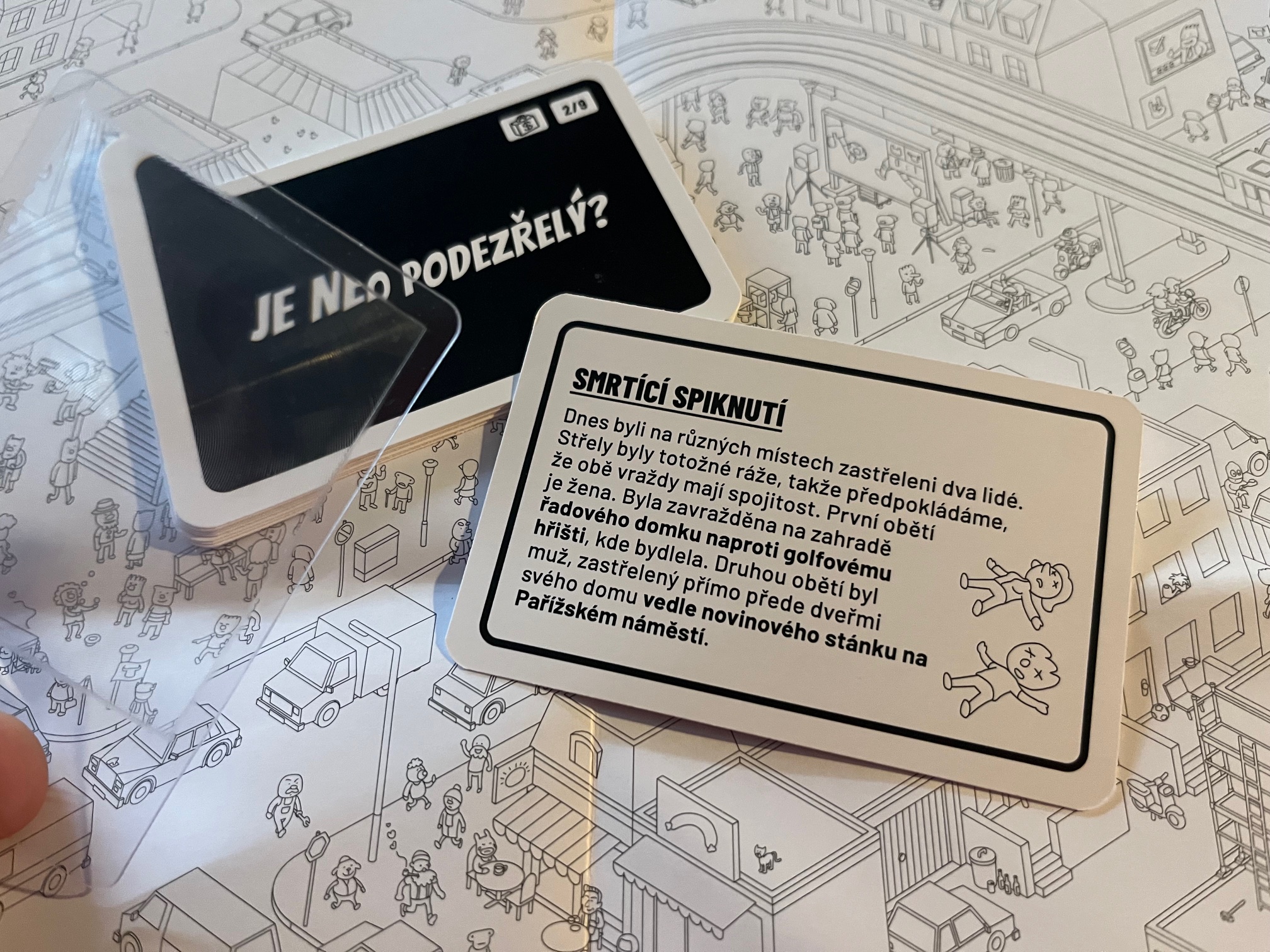 Co bych možná uvedl jako jednu malou výtku, nebo spíš dvě – pokud hru srovnávám s verzí Junior, chybí mi zde označovací žetony, které nám často pomohli držet linii vyšetřování, a také se nám případy lépe řeší pomocí knihy s kroužkovou vazbou a otáčením stran než pomocí karet, kde vždy hrozí rozsypání, pád a neopatrná manipulace. Na druhou stranu už sám nevím, kam bychom knihu na stole dali, protože herní plán je tady opravdu hodně velký.