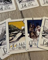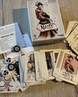 Předejte dotazům – ano, karty se do krabičky vejdou obalené. Celkově se mi osobně zpracování hry líbí. Nejen grafikou a kvalitou, ale i třeba ikonografií, která rychle začne dávat smysl a po pár hrách už jsme ani nepotřebovali pravidla nebo nápovědní karty. Možná překvapivě zabere hra o trochu víc místa, než by se mohlo zdát a je přeci jen lepší hrát Naiši u normálního stolu, než třeba ve vlaku.