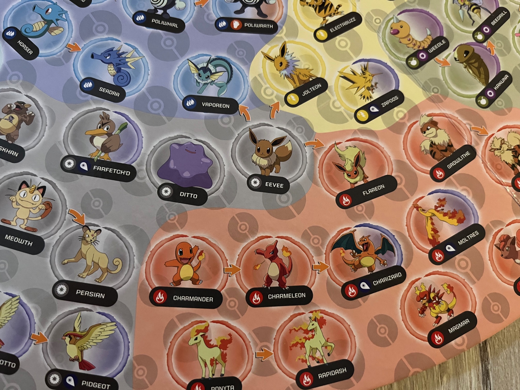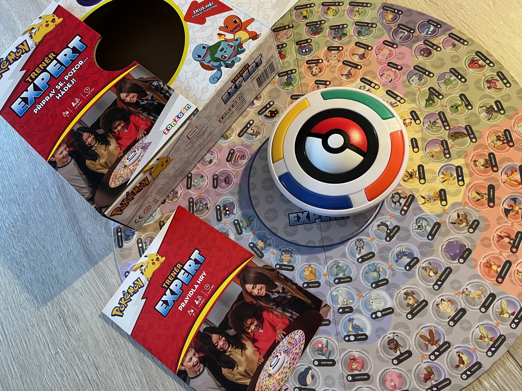 Pokémon Trenér Expert je doslova jinou hrou, než o které běžně píšu a představuju jí. Ostatně už svým balením, kterému dominuje elektronické zařízení v podobě pokéballu zasazeného do kulatého tvaru a barevných stran. Ostatně kromě něj najdete ve hře již kulatý oboustranný herní plán a čtyři označovací kroužky, které jsou šikovně schovány v přihrádce na spodní části zařízení. Pokud se vůbec dá mluvit o pravidlech, tak ta mají všehovšudy dvě strany, přičemž jedna vysvětluje hru a ovládání zařízení, druhá pak přehled typů Pokémonů a evoluce – protože jak každý správný trenér ví, mají Pokémoni rozličná vývojová stádia.