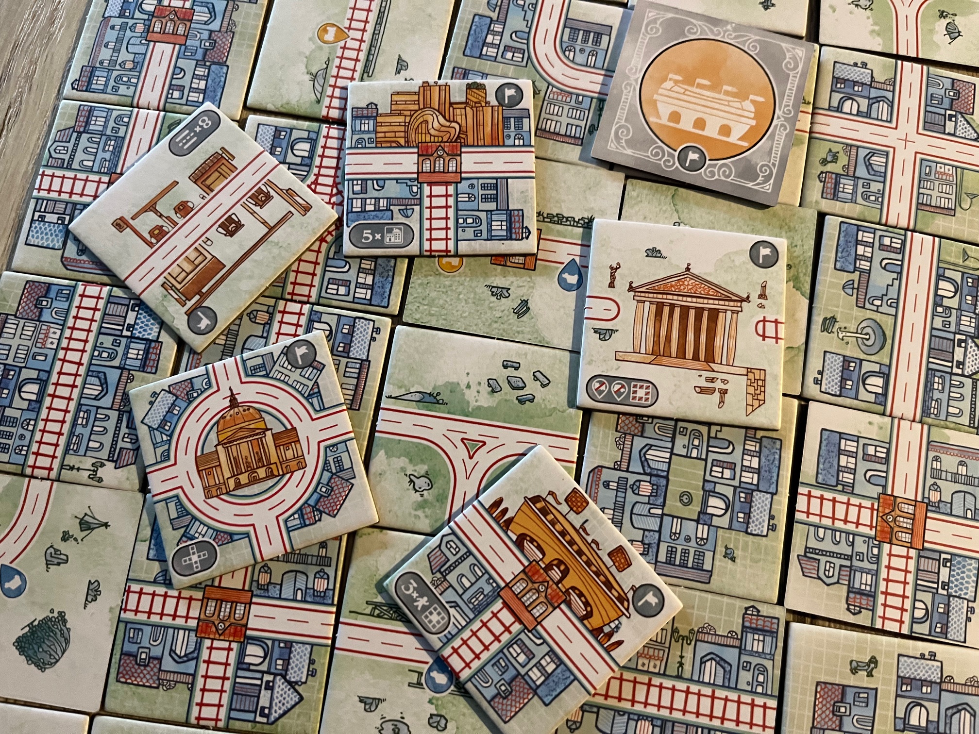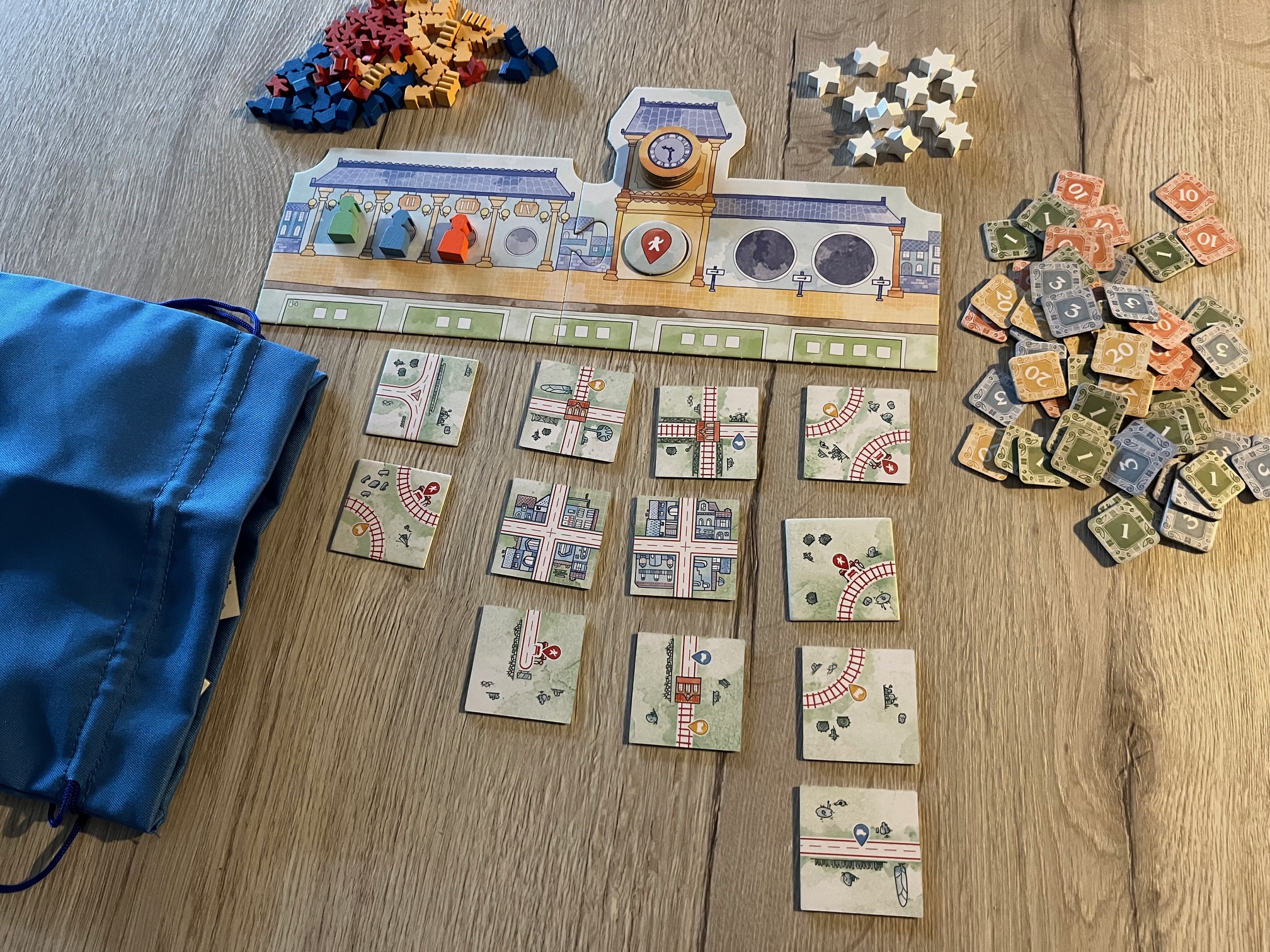 Herně je Railroad Tiles v zásadě velmi prostou a jednoduchou hrou. Takový skládací zen s pěkným tématem. Na začátku hry se do sáčku umístí destičky cest, doprostřed stolu deska stanice a na ní žetony dopravního ruchu a figurky hráčů v náhodném pořadí. Bokem pak žetony prestiže a figurky. Pod každou zvýrazněnou část desky se nalosuje příslušný počet desek, otočí první žeton cestovního ruchu a vzhůru do hry.