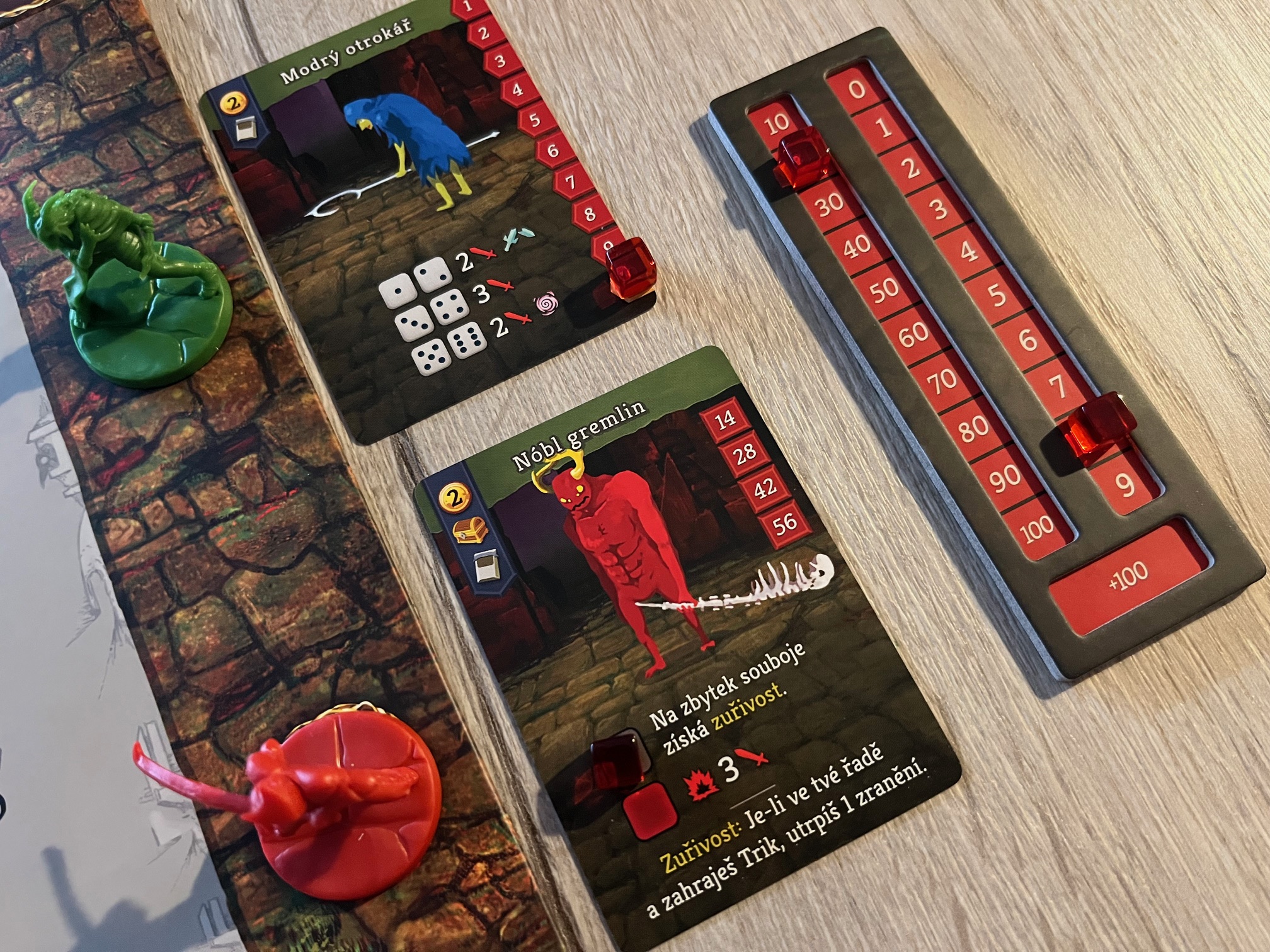 Nebudu vás nudit nudným přepisováním pravidel hry. Nejsou výrazně složitá, ale samozřejmě vše vysvětlit chvíli zabere. Důležité je, že celá kompletní partie je hrána na trojici kapitol, tzv. věží, kterými postupně hráči v podobě hrdinů procházejí po jednoduchém herním plánu, který se skládá z fixních i náhodných míst, jako jsou střety s nepřáteli, místa odpočinku, místa událostí či pokladů, se kterými různým způsobem interagují a zatímco většina je rychlá a má jen pár rozhodnutí, stěžejní jsou samozřejmě střety s běžnými či elitními nepřáteli a samozřejmě finálními bossy.