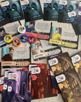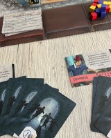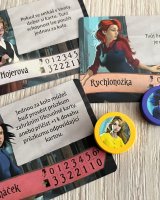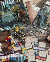 Po otevření boxu jistě potěší velmi pěkný a funkční plastový insert, do kterého vše přehledně a šikovně vyskládáte. A že toho není málo! Hra totiž obsahuje desítky různých žetonů kartonových (lokace či zámky), ale i dřevěných (postavy, Vontové nebo ukazetele), ale také více než stovku karet s perfektními ilustracemi kladoucími důraz na atmosféru a herní zážitek. Vše pak doplňuje velký herní plán a desky, který doslova zkrášluje herní stůl. To ale zdaleka není vše, protože ve hře vás čekají ještě zapečetěné obálky pro 4 scénáře, kdy každý je jiný a přináší odlišné herní možnosti a zážitek vycházející z knižní předlohy Stínadla se bouří.