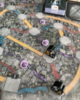 A ano, mechanická stránka hry funguje na výbornou. Líbí se mi karetní systém, nutnost plné a funkční kooperace i rychlé a dynamické vyhodnocování, ať už akcí hráčů, Vontů nebo třeba všech „soubojů“. Hra netrpí na nějaké zasekávání nebo ztrátu tempa, naopak vše strašně hezky funguje.
