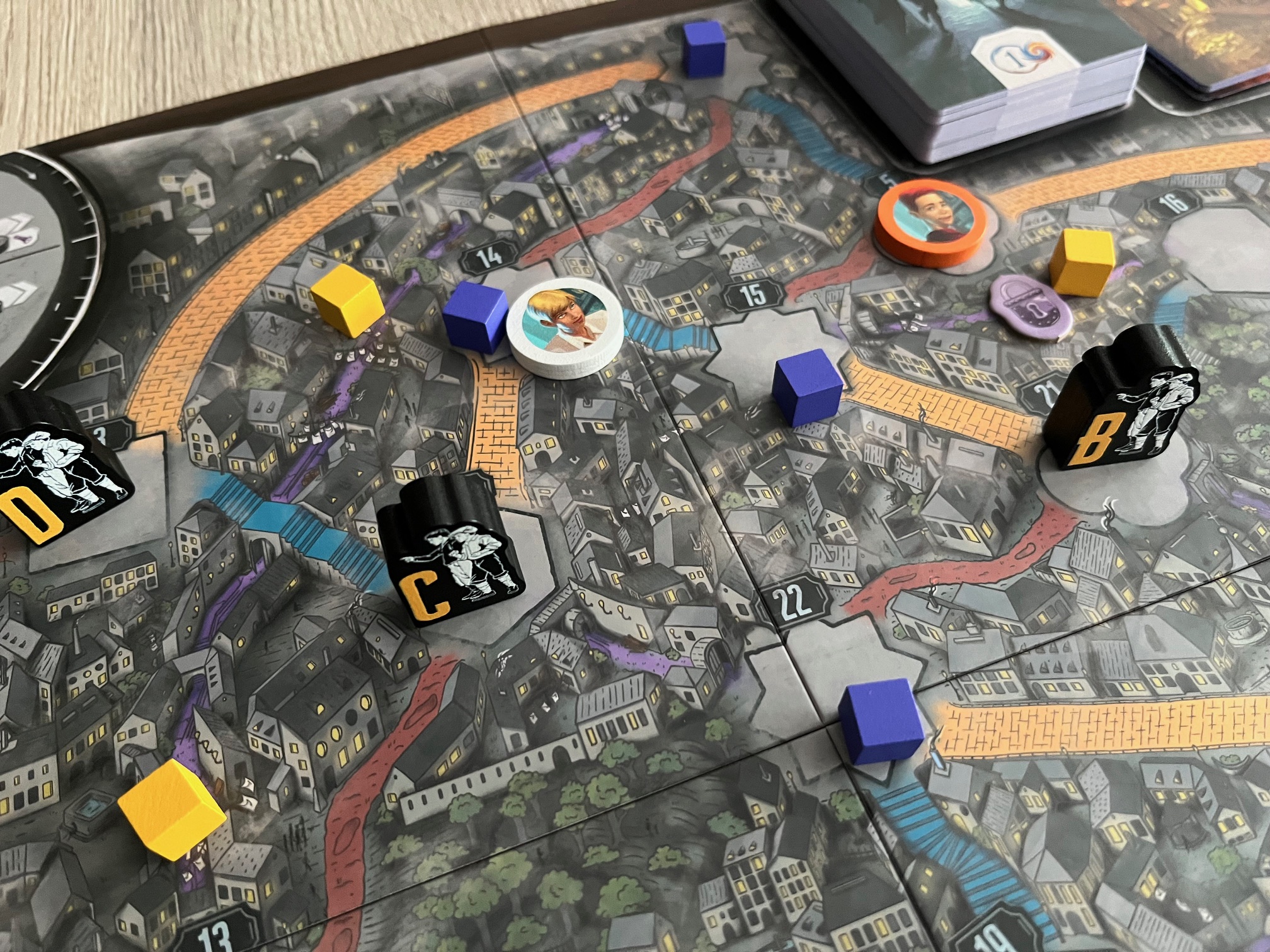 Každopádně grafická stránka se mi u hry hodně líbí, a to už při pohledu na krabici v nočních uličkách Stínadel, která jsou jasně inspirována Prahou a jejími zákoutími. Ano, děj Stínadel se samozřejmě může odehrávat v jakémkoliv jiném městě a čtvrť je fiktivní, ale právě Praha je jasnou inspirací.