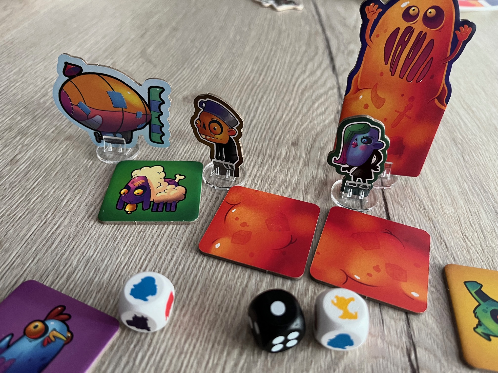 Osobně se mi líbí zpracování, zejména ilustrace Petra Štefka, které v sobě kombinují komiksovou roztomilost a nemrtvý styl rozpadajících se zvířat i samotných trablíků. Na stole to vše pěkně barevně vypadá, ale přitom hra neztrácí přehlednost.