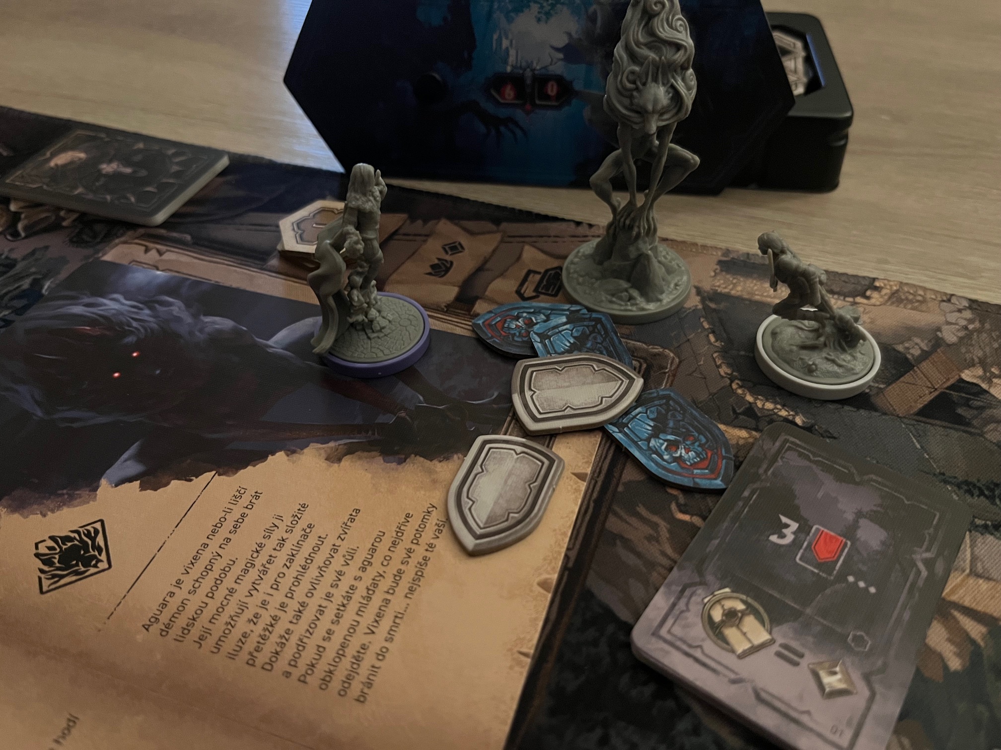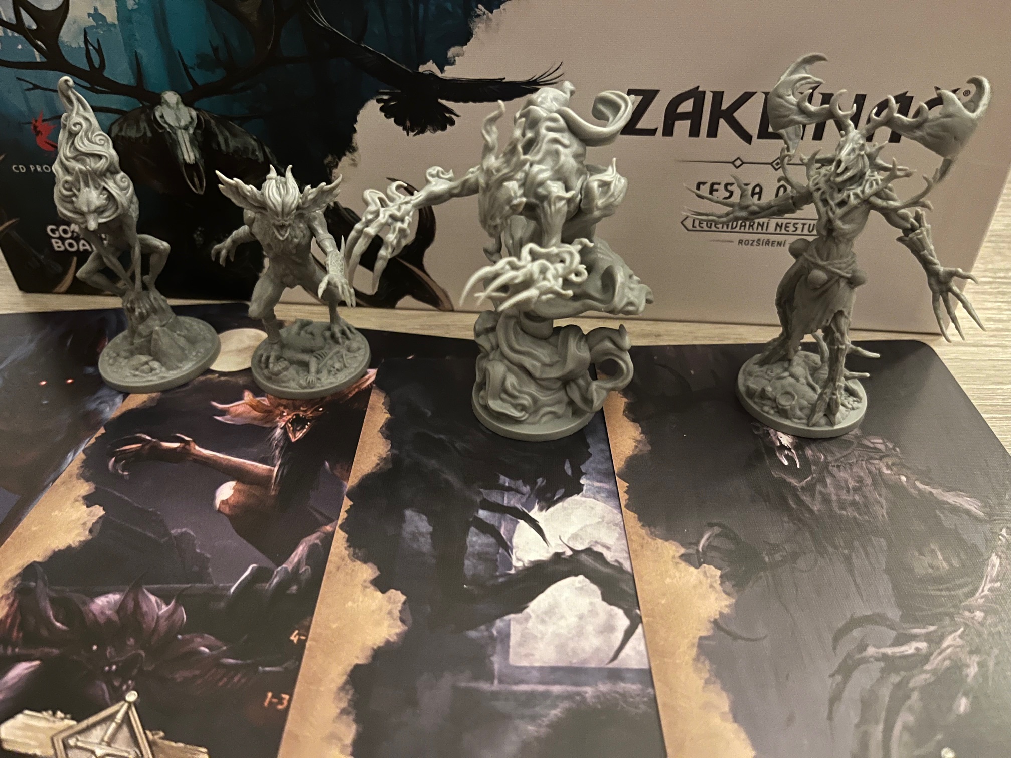 Šlo to udělat jinak? Samozřejmě. Místo figurek mohly být standees, mohlo se ubrat na velikosti karet, namísto žetonů počítadla. Je to krásné? Ano, nesporně. A mě se to prostě líbí. Legendární nestvůry si stejně jako celá hra nesou punc kvality a výjimečnosti a přesně splňují do pravé dokreslení atmosféry na stole. Ostatně vždy je lepší, když vám do hry vtrhne Lešij v „nadživotní“ velikosti proti hrdinům, než obyčejný žeton.