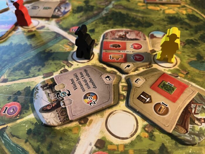 Třetím herním prvkem jsou pak řemeslníci, tedy v podstatě dostupné akce, které najdete ve vesnicích, ale které můžete během hry přesouvat a měnit tak dostupnou nabídku. To dodává hře na variabilitě, herních možnostech, ale i dynamice rozhodování a putování krajinou pomocí workerů hráčů. Stejně jako budovy, kterých je opravdu hodně, malé jsou oboustranné a jsou rozděleny do 4 základních typů – bodovací, měnící, trvalé a jednorázové. A vždy sice použijete všech 36 malých, ale deset náhodně otočíte. Tím se opět mění variabilita a znovuhratelnost hry.