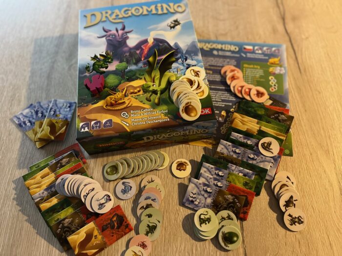 Kingdomino Bruna Cathaly a vydavatelství Mindok je pro mě jednou z moderních klasických her. Jednoduchá pravidla, geniálně prostá hratelnost postavená na dominu a nekonečná znovuhratelnost pro všechny generace. A to jak v samotném základu, tak i v pokračování Queendomino nebo později v Lovcích mamutů, kteří celý koncept posunuli svěží a povedený kus dál. I když se však jedná o krásně přístupnou hru, díky nutnosti taktiky a kombinování přeci jen potřebujete trochu starší hráče, než úplné děti. A toho si je vědom jak samotný autor, tak i Marie a Wilfried Fortovi, kteří dali společně hlavy dohromady a na bázi povedené hry přivedli na svět její lehčí, přístupnější verzi pod názvem Dragomino. A protože i u nás se po pokojích rozběhlé dětské nožky, nastal ideální čas tuhle hru vyzkoušet.