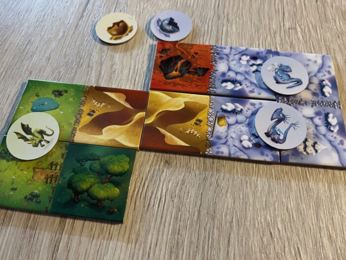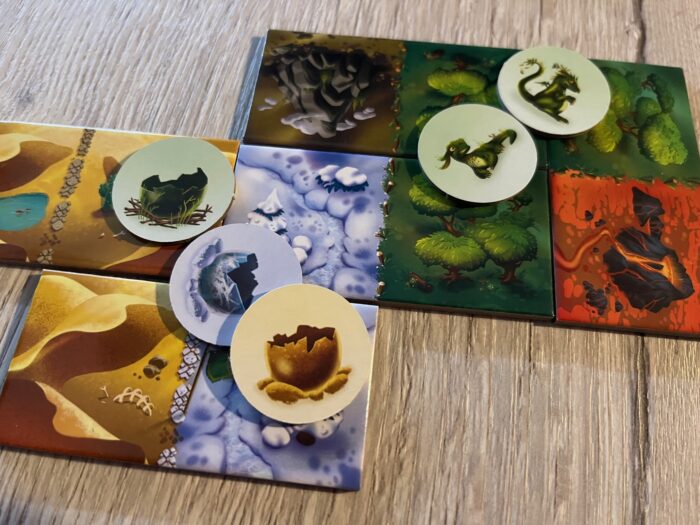 Jednoduše! V tom tkví největší krása a síla hry. Na začátku si každý hráč vezme jeden startovní dílek a bokem se připraví sady vajíček dle šesti barev. Hraje se na 7 kol – výprav, kdy na začátku každého se připraví nabídka 4 dílků krajiny a hráči si postupně, od prvního, jeden dílek zvolí a přiloží ho ke své krajině. Vtip je v tom, že pokud se hráči podaří propojit dva dílky krajiny stejné barvy (typu), může si vzít jeden dračí vajíčko. To na sobě má tajně buď puklou skořápku, nebo dráčky. A právě druzí jmenovaní jsou stěžejní, protože přinášejí vítězné body na konci hry.