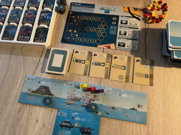Před každou hrou je nutné vybrat jeden ze scénářů. Na začátek určitě doporučuji první, pak už je jejich volba samozřejmě zcela svobodná. Scénáře určují herní detaily, specifickou přípravu, ale i zvláštní pravidla či počáteční rozložení desek oceánu nebo bodování. A také stupnici dopadu. Příprava hry je trochu delší, přeci jen než vše rozložíte na stůl – kromě žetonů a desek i třeba karty výzkumu a k tomu komponenty pro hráče – nějakou dobu to zabere. Jakmile však máte komponenty na stole, můžete se všichni pustit do průzkumu a výzkumu zákoutí oceánu a jeho fauny i flóry.