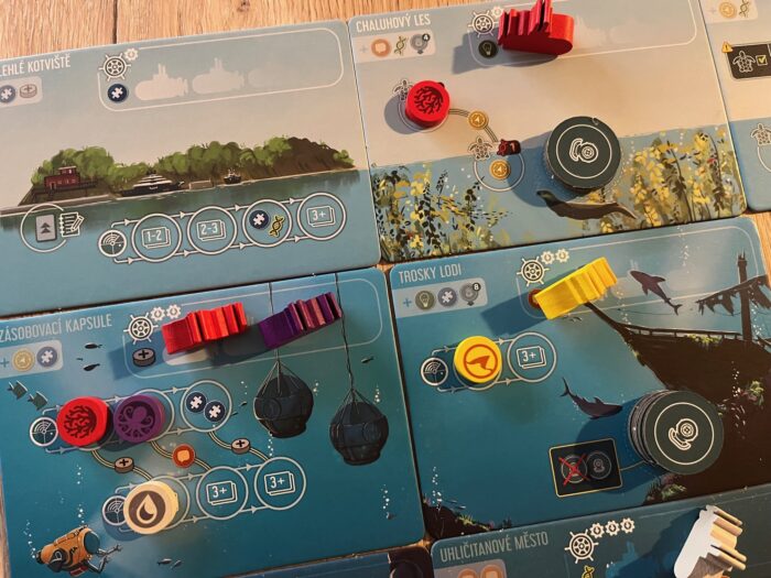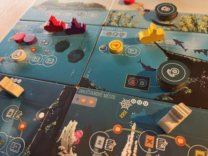 Co musím zmínit, tak to je podle mě velmi příjemná a hezky udělaná detailní grafika komponent. Nejde jen o loga společností nebo destičky specialistů, ale zejména desky oceánů, kdy každý díl je originální a můžete se tak vydat na mořskou stanici, na do rodiště velryb, ale i třeba uhličitanového města. To vše čeká pod mořskou hladinou včetně krásných detailů. Jednoduše řešeno hra na stole vypadá zcela nádherně a produkčně je pěkně zvládnutá a právem se řadí mezi nejhezčí hry, které vyšly.