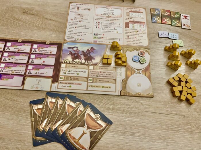 Pokud by na vás byla základní hra dlouhá (deklarovaných 120 min je spíš nezbytný základ), lze si zahrát rychlejší variantu, kdy je vynechána I. nebo naopak III. epocha. Ono jednoduše musíte přijmout, že Epochy jsou civilizační hrou se vším všudy, tedy i s delším herním časem.