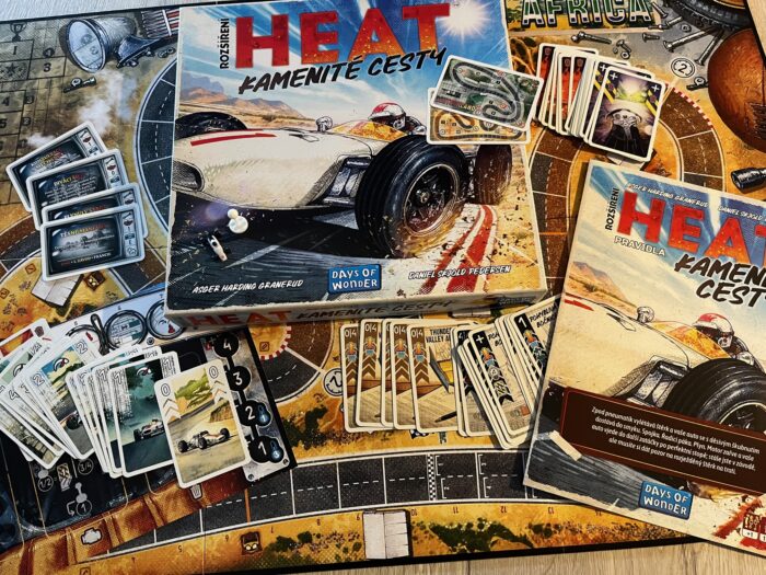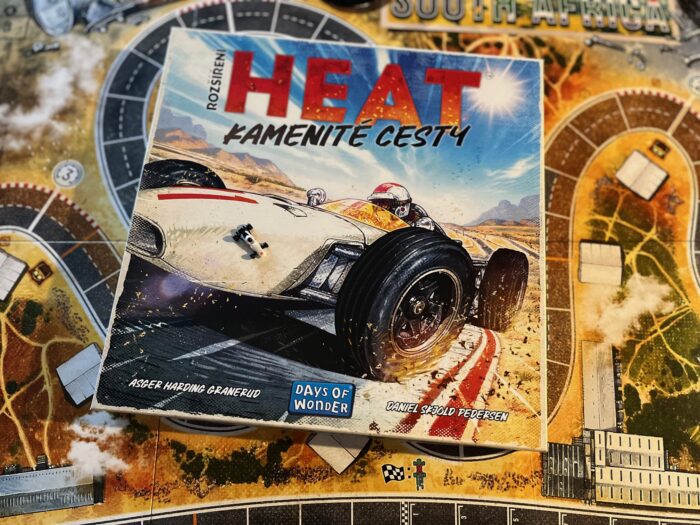 Osobně se u rozšíření pro Heat vždy nejvíc těším no nové tratě. A u Kamenitých cest rozhodně nejsem zklamán. Německo a šikany, tedy dvojité zatáčky, možná natolik inovativní není, ale štěrk v JAR? To už je jiná. Mechanicky mi to připomnělo hlubokou vodu z Japonska, ale tady ani nemusíte řadit a kartu Heat dostanete vždy. Tedy za předpokladu, že vám nějaká zbývá. A protože všichni víme, jak důležitý Heat je, jedná se o nepříjemný efekt. Co se mi hodně tematicky líbí, to je mj. to, že štěrk se nemusí nalézat plošně v obou stopách trati a hodně tak záleží na manévrování a využívání pořadí. Zároveň ne, tohle není expanze, která by některé hráče, kterým se Heat od počátku nelíbí, ke hře přivedla. V zásadě je to totiž pořád to samé – stejný ústřední mechanismus, téma a fungování s novými twisty. Za mě je trochu škoda, že se štěrk nenachází na obou tratích, byť logicky a tematicky dává v prašném prostředí JAR větší smysl.