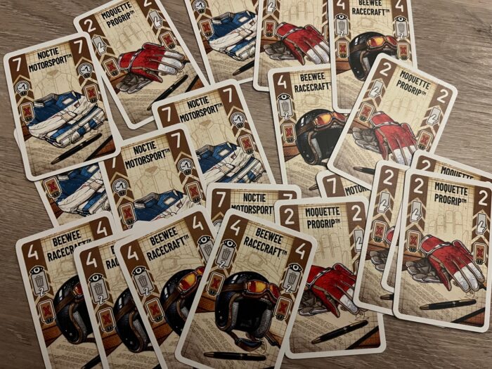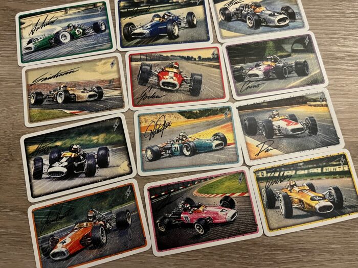 A že jsou pro vás základní i vylepšené legendy stále slabé a pomalé? Vážně? V tom případě můžete do hry přivítat Rivaly. Jejich použití je naprosto jednoduché – dvě formule (buď ty nejdále od hráče či v šampionátu dvě nejvýše postavené) přepnou do rivalského módu, což znamená využití druhé (pravé) karty vylepšení legend. Z legend se v tu chvíli stávají doslova po vítězství prahnoucí nemilosrdní soupeři, kteří vám nedají ani kousek závodního prostoru zadarmo. Ano, hra sice doporučuje a mluví o dvou rivalech, ale nic nikomu nebrání jich při hraní využít více. Jen pak nechoďte brečet, že jste dojeli poslední. Zároveň musím zmínit, že na připomenutí, které formule jsou rivaly, slouží nádherně ilustrované karty.
