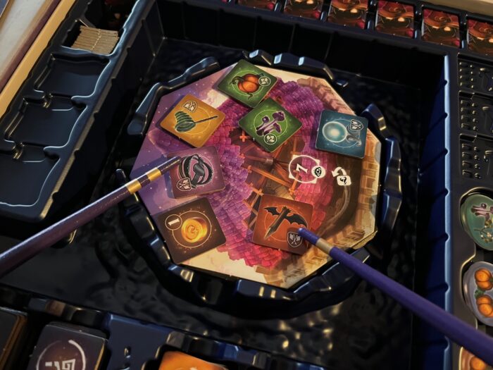 Na první pohled by se mohlo zdát, že Incantibus je jen další hrou se sbíráním a využívám žetonů. A chce se mi říct ano i ne. Ano, základem je postupné sbírání žetonů ingrediencí, zbraní, zlata, příšer či knih, ale i lektvarů a jejich využití a příprava nejen na finální kouzelníky, ale přitom je hra zcela originální.