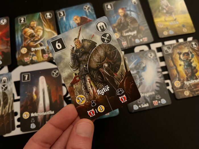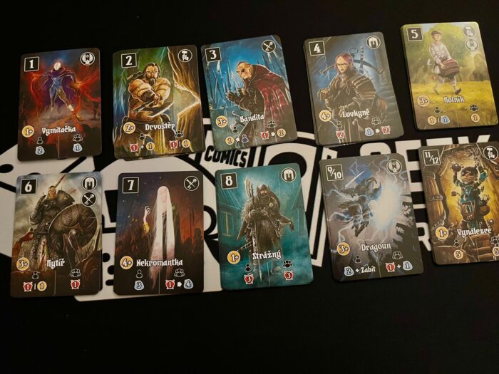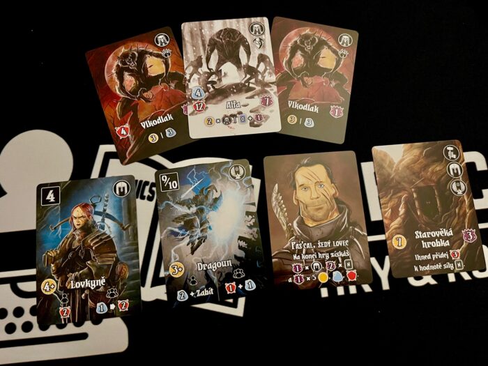 Kromě monster tvoří druhou velkou část karet nová nabídka obyvatel. Těch je rovnou 10 a v zásadě jsou tematicky a mechaniky uzpůsobeni celému rozšíření a nepřátelům – lovkyně, nekromantka, dragoun či vymítačka. U téhle hry je plus, že si můžete balíčky různě namíchat, i když my jsme nejvíc hráli právě za použití kompletní nové sady obyvatel. Podobně jako nepřátelé mi i karty obyvatel připomněli klasické horory, ať už literární či filmové. A jako fanoušek klasiky jsou jednoduše v sedmém nebi. Celou Valerii v podstatě expanze, jak sám název ostatně napovídá, posouvá k temnějším tónům a zasazení.