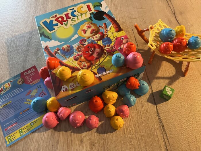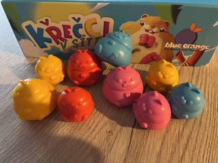 Už krabice svou barevnou hravostí jasně inklinuje ke hrám pro celou rodinu, včetně těch nejmenších hráčů. Pod víkem pak čekají velmi jednoduchá a přehledná pravidla, ale hlavně sada 28 křečků ve čtyřech barvách a vždy po 4 malých a 3 velkých pro každého hráče. K nim jedna skládací houpací síť a herní kostka. V zásadě minimalistické balení vystačí na pořádnou zábavu. Zároveň je však třeba napsat, že ač je komponent v podstatě minimum, vše je hezky zpracované, křečci skvělí na manipulaci a skládání a rozkládání sítě otázka minuty. Celkově je vidět kvalitní zpracování původního vydavatelství Blue Orange games.