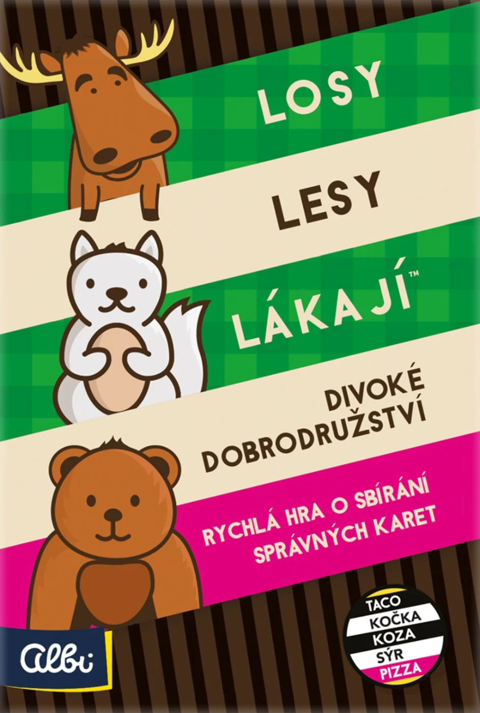 Trochu bláznivá karetní postřehovka od Albi skrývající se pod názvem Taco, kočka, koza, sýr, pizza se dočkala nejen popularity napříč deskoherními skupinami, ale i řady různých verzí, ať už pro děti, s různými obměnami s dárkem či ve verzi k vodě s plastovými kartami. Na tuhle rychlovku ale rychle zapomeňte, protože Albi si připravilo novinku v podobě hry Losy lesy lákají, která svým tvůrcem na zmíněnou herní řadu navazuje, ale zároveň přináší zcela jiný, rychlý, dynamický a zábavný herní zážitek.
