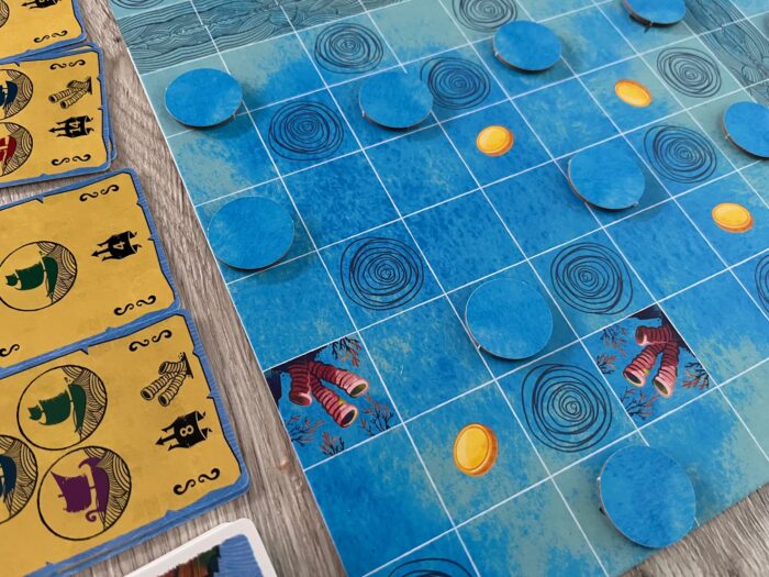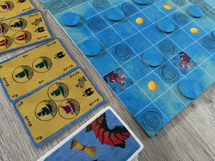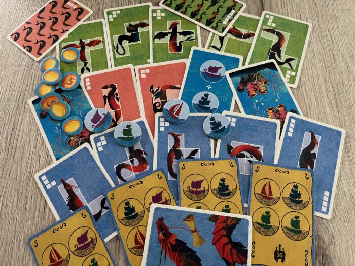 Herní materiál je doplněn o řadu žetonů, ať už lodí či mincí, ale i důležitých karet skládajících se z karet draků, úkolů a korálů.