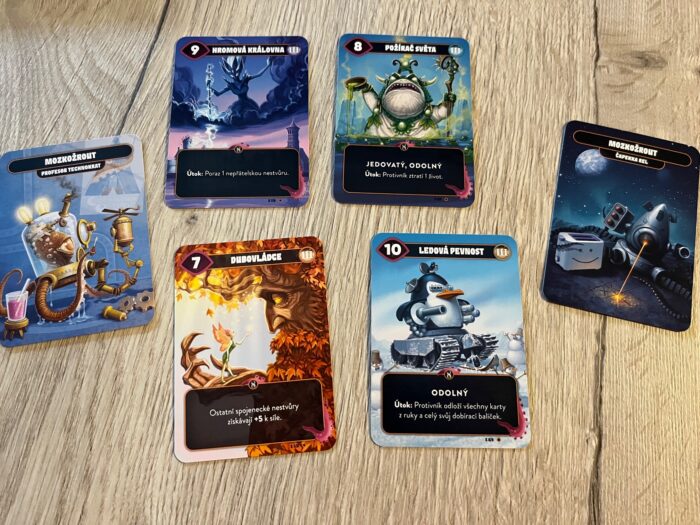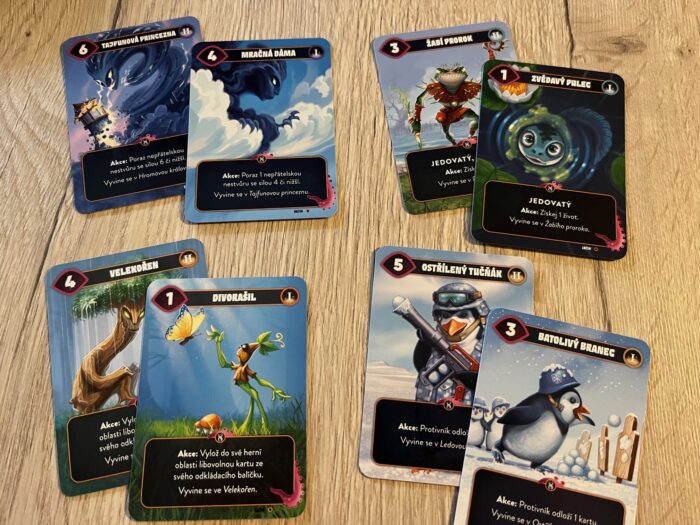 Celkově se budu opakovat, ale zpracování hry je super. Osobně se mi hrozně líbí grafický styl i ztvárnění karet. Vše je barevné, ale zároveň přehledné. Navíc je hra díky „pouze“ kartám krásně minimalistická, a pokud nechcete, nemusíte ani využívat přiložená počítadla a životy počítat třeba pomocí nepoužitých karet. Tedy ideální i na cesty. Osobně musím přiznat, že jsem si dal karty do speciální plastové krabičky od „magiců“, abych mohl mít všechny karty ke hře u sebe, protože po obalení vše do jednoho boxu nenarvete.