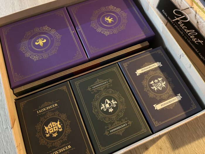 Musím říct, že rozbalení pro mě bylo poměrně velké překvapení, protože pod pravidly a obsáhlým glosářem najdete řadu kartonových krabiček na komponenty. Ano, to je jedno ze specifik hry, kdy každá rodina má jeden box a na společné komponenty jsou dva větší. Za mě se jedná o pěkný a funkční nápad, kdy každé rodině dáte její základní vybavení, zbytek do společných krabiček a nic vám nikde nelítá v plastových sáčcích.