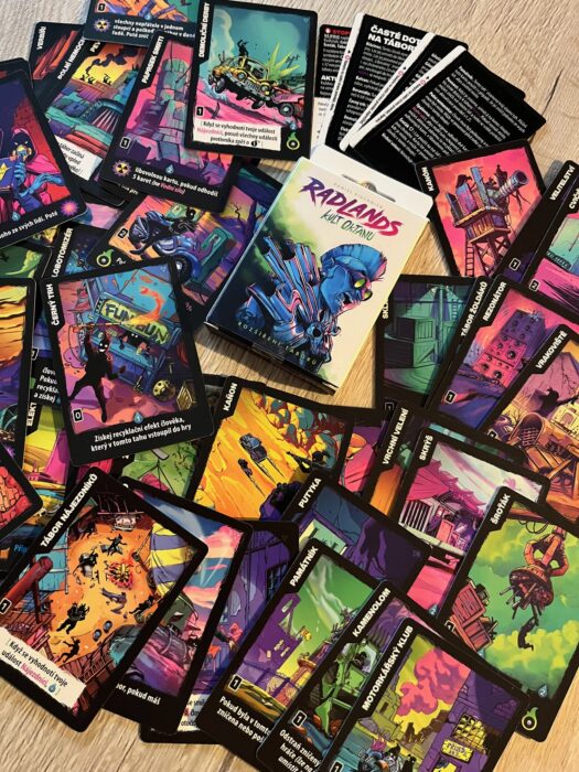 Dodnes si pamatuji, jak jsem před mnoha lety hltal film Šílený Max 2: Bojovník silnic v čele s ikonickým Melem Gibsonem a s šílenou postapokalyptickou vizí George Millera ve světě plném krvežíznivých šílených nájezdníků a gangů bojujících o to, co zbylo z civilizace, ale hlavně o náboje, vodu a pohonné hmoty. A přesně tohle se stalo předlohou skvělé deskovky Radlands, kterou u nás v roce 2022 vydalo vydavatelství TLAMA games, a ve které Daniel Piechnick na stůl přivedl perfektní duelový souboj postavený na společném balíčku karet plným gangsterů a sakra škodících událostech, variabilních táborech a skvělých synergiích a kombinacích karet mezi sebou. A i přes pořádnou záplavu her, která se na nás neustále řítí, a to i v duelové dvojkové kategorii, se Radlands stala jednou z našich stálic, kterou pravidelně vracíme na stůl…. i když pravidelně znamená, že se nám do letošního října zhruba rok na stůl nedostala. Taková škoda!