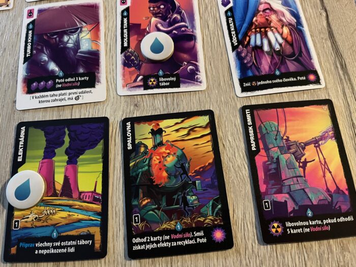 Právě teď ale nastala ideální chvíle přivést na stůl zpět vůni benzínu, žízeň po vodě a drsné souboje až do posledního pankáče, protože nám Tlama přichystala příjemné překvapení v podobě menšího rozšíření Kult oktanu. To je hodně zajímavé v tom, že tvůrce hry s jeho vytvořením pro Roxley (původního vydavatele) souhlasil jen v případě, že expanze nepřinese nové karty lidí ani událostí a nenaruší tak balanc hry samotné, ale hráčům se do ruky dostanou pouze nové tábory. Pár let to trvalo, ale dohoda nakonec padla, a to nejen na tábory zcela nové, ale i na rebalanc 10 táborů původních k lepšímu.