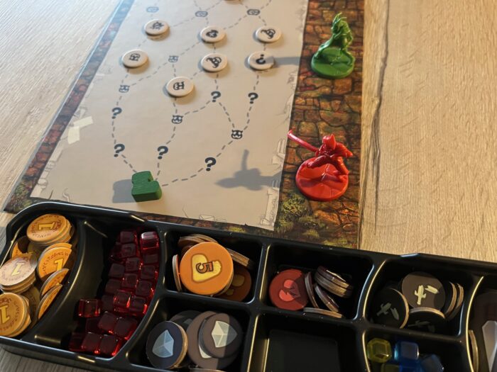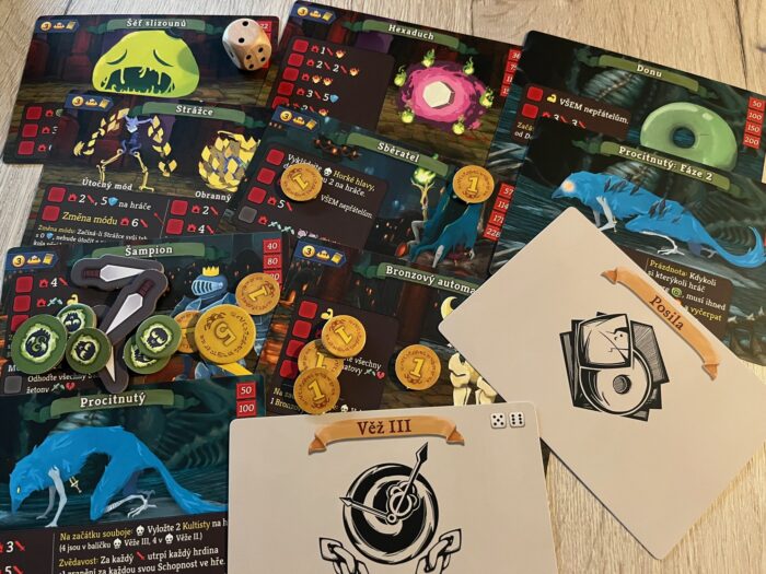 Nebudu vás nudit nudným přepisováním pravidel hry. Nejsou výrazně složitá, ale samozřejmě vše vysvětlit chvíli zabere. Důležité je, že celá kompletní partie je hrána na trojici kapitol, tzv. věží, kterými postupně hráči v podobě hrdinů procházejí po jednoduchém herním plánu, který se skládá z fixních i náhodných míst, jako jsou střety s nepřáteli, místa odpočinku, místa událostí či pokladů, se kterými různým způsobem interagují a zatímco většina je rychlá a má jen pár rozhodnutí, stěžejní jsou samozřejmě střety s běžnými či elitními nepřáteli a samozřejmě finálními bossy.