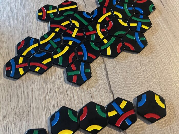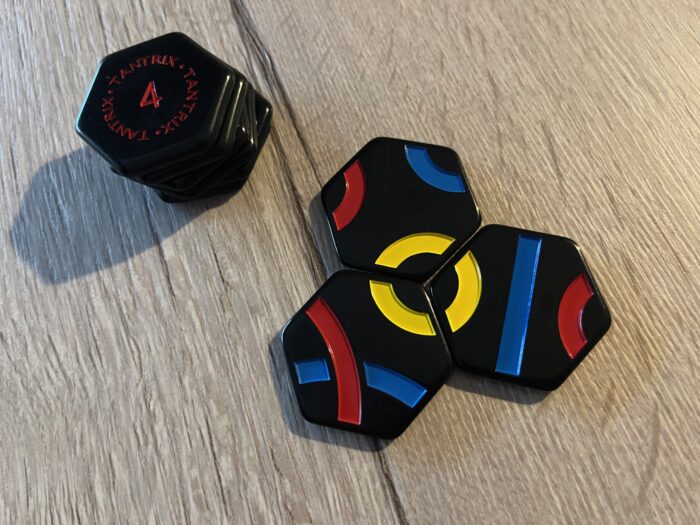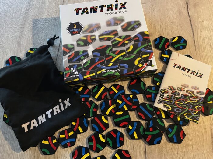 Tantrix je abstraktní skládací hra, za níž stojí Mike McManaway. Hra si prošla slušným vývojem co do herních režimů a možností, ale tato nejnovější verze je pro 1-6 hráčů od 6 let s herní dobou od několika málo minut až po nějakých 20-30. Hodně záleží na tom, jaký herní režim (a počet hráčů) zvolíte, ale principem a základem celého konceptu je skládat šestiúhelníkové herní dílky tak, aby vytvářely navazující linie jednotlivých barev. Akorát někdy musíte tvořit linky co nejdelší, jindy smyčky a někdy zase využít přesně stanové dílky či jejich počet.