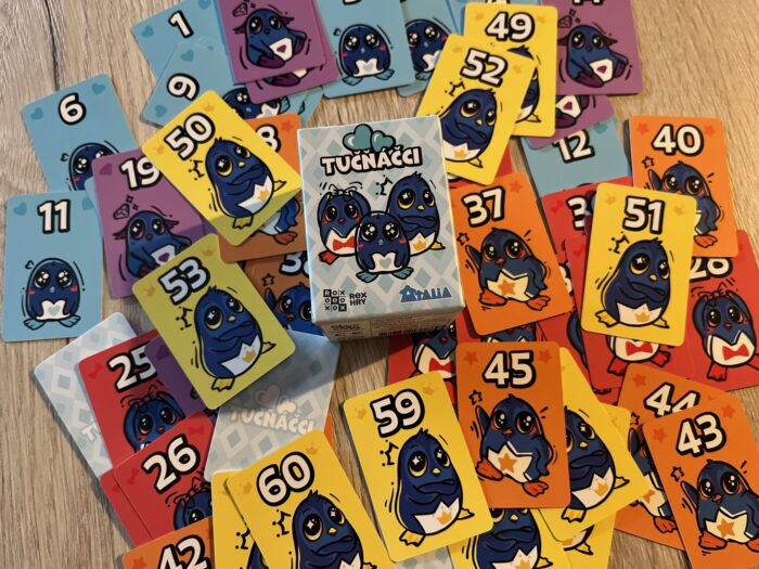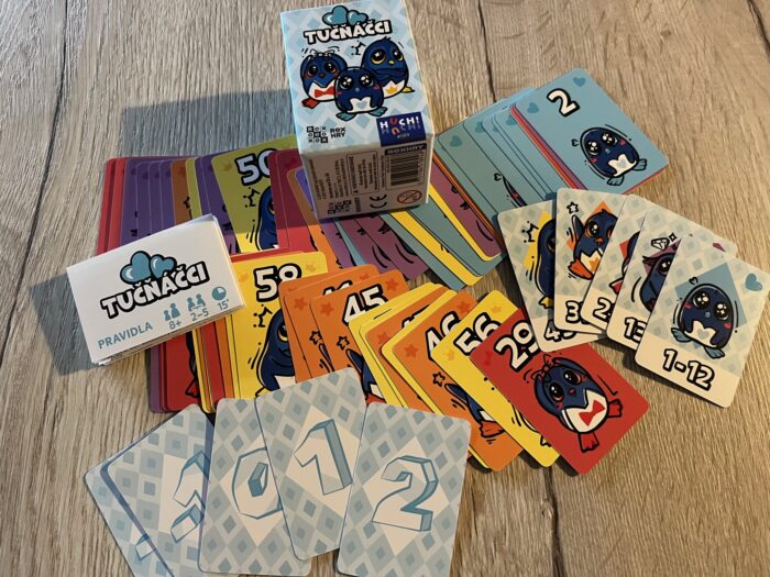 Jasně, ve své podstatě nejsou Tučňáčci až tak originální, je to prostě štychovka jako řemen – zahrajete, vyhodnotíte štychy, vítěz bere vše. Jenže tady se přidává práce s hodnotami karet v obráceném pořadí. Vysoké karty jsou super, ale musíte je vyvážit slabšími, rozhodně nechcete vyhrát štych, kde jsou tři další záporné karty. Naopak pokud jste poslední a seberete tři kladné jedním tahem, je to doslova satisfakční pocit.