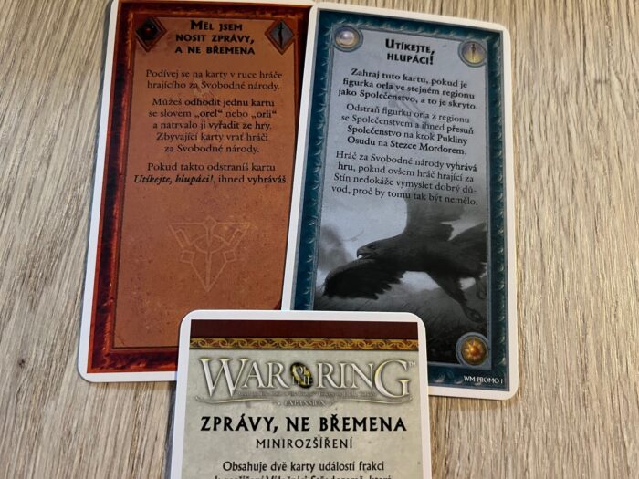 Válka o prsten – jedna z nejepičtějších deskových her, která se k nám kdy dostala. Velká, megalomanská, epická, nádherná a jedinečná. A také mnohdy komplikovaná, dlouhá, se spoustou pravidel a možností. A když si jí okořeníte o expanze, tak ještě větší, epičtější a komplikovanější. Zatímco první rozšíření přináší mocné pány a vládce, druhé rozšíření doplňuje šiky armád, které proti sobě chřestí zbraněmi, kusadly či mocnými křídly. Přivítejte ve Středozemi mocné válečníky.