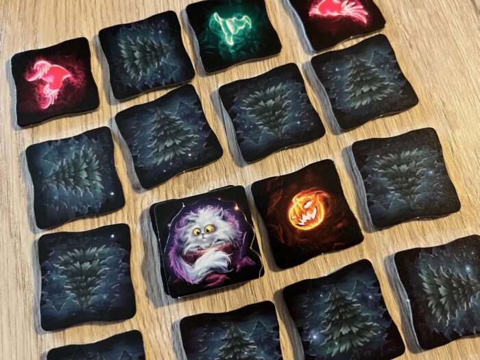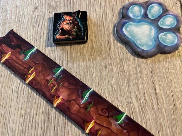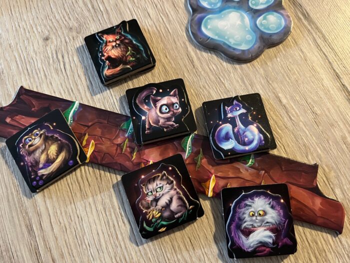 Ano, hra vypadá nádherně. Ani nemusíte mít zmíněné UV světlo, už v základu vypadá na stole hra krásně. Povedená barevná grafika, detailní bludičky a krásně udělané kočky s perfektním detailem kočičáka hledícího skrze díru po suku.