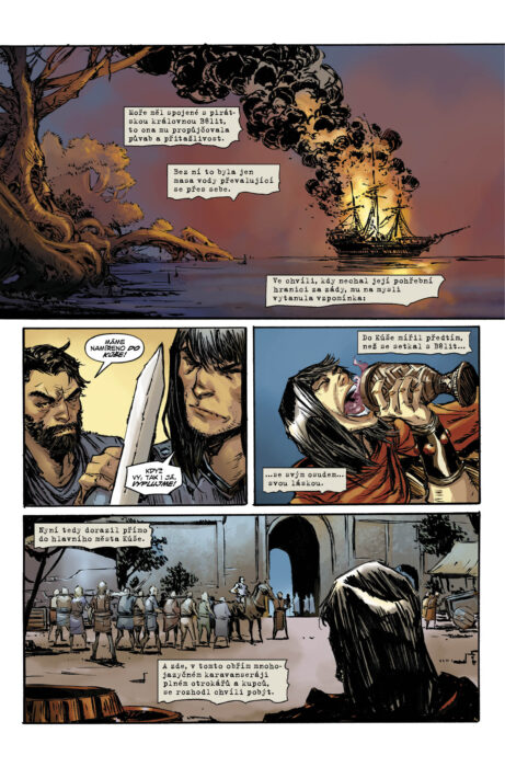 Vydavatelstvím Comics Centrum považuji za předního českého vydavatele komiksového Conana. Série od Marvelu, retro archivy, ale hlavně má nejoblíbenější řada Dark Horse Comics, se kterou začala má cesta Hyborie po boku ošlehaného barbara, zloděje, válečníka, piráta i krála, po boku mocného Conana. I když musím místy říct, že se možná rámec dějství Conanových dobrodružství opakuje, stále mě baví, a to i po úctyhodných 16 knihách. Poslední čtveřice tvořila tak trochu delší ucelený oblouk, jehož druhou hlavní postavou byla Královna Černého pobřeží, hrdá pirátka Bêlit, která se stala Conanovou družkou, spojenkyní a milenkou.