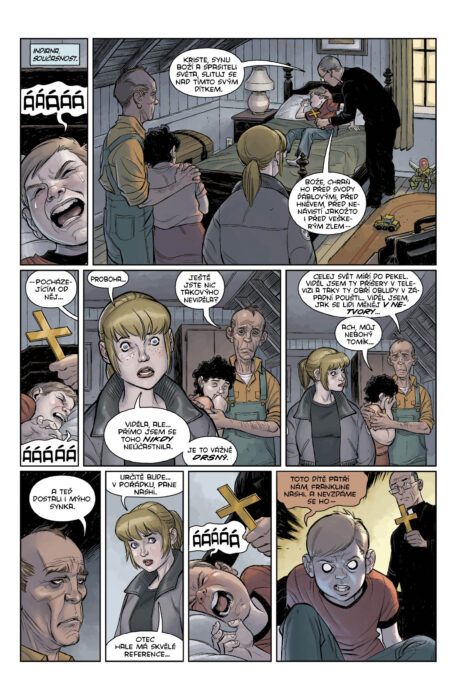 Hned na úvod musím říct, že takovou knihu a příběh jsem v téhle fázi série úplně nečekal. Do epického finále totiž zbývají dvě knihy, respektive jedna patnáctá, a tak jsem čekal cválavý dusot pekelných kopyt do finále. Jenže tedy začínáme příběhem v roce 1890 kdesi v Africe, kde dojde k vymítání ďábla z členky britské rodiny, abychom se následně přesunuli k vymítání ďábelského poskoka v Indianě za asistence mladé agentky. Vše se tak trochu zvrtne, a místo aby byl démon vypuzen, přemluví agentku ke spolupráci a vyřešení otázek z minulosti, kdy musí v duchovní dimenzi vymítit démona ze samotného vymítače. V druhém příběhu se pak o nové zkušenosti a dovednosti silnější agentka vydá do malého amerického městečka, kde se ztrácejí děti a místní sekta samozřejmě není bez viny. Mimochodem docela zajímavé je, že v rámci původního sešitového vydání je mezi oběma příběhy (v orig. Exorcism a Exorcist) docela dlouhá doba mezi vydáním, kdy první vyšel v roce 2012, druhý až 2016.